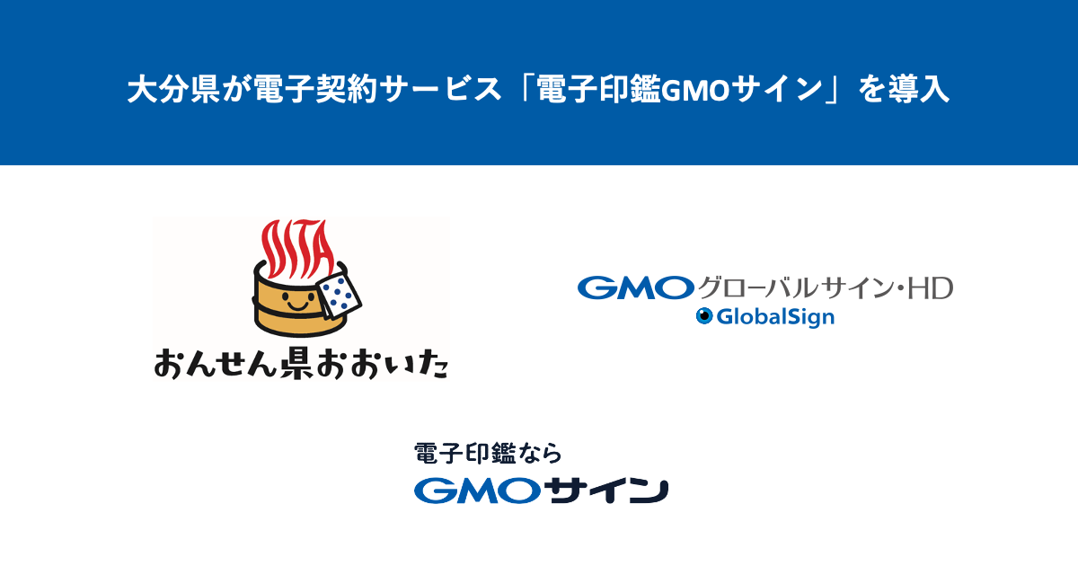 GMOグローバルサイン・ホールディングス株式会社(代表取締役社長:青山 満 以下、GMOグローバルサイン・HD)は、自社が開発・提供する電子契約サービス「電子印鑑GMOサイン」が、大分県(知事:広瀬 勝貞)に導入され、2022年9月より正式な運用開始が決定したことをお知らせいたします。なお、大分県内の自治体における電子契約の正式な導入発表は他に例がなく、今回が初となります。