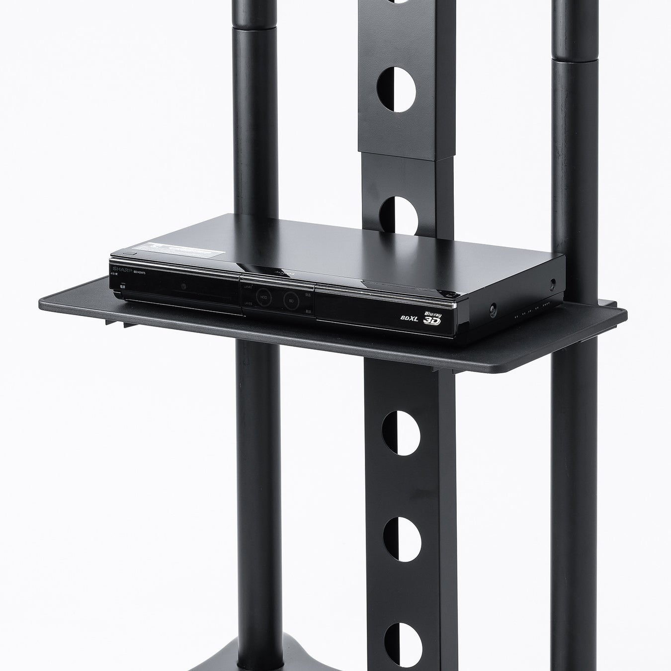 また、棚板が1枚ついているので、チューナーやDVDレコーダーなどを設置することができます。棚板も設置する機器に合わせて高さが調節可能です。