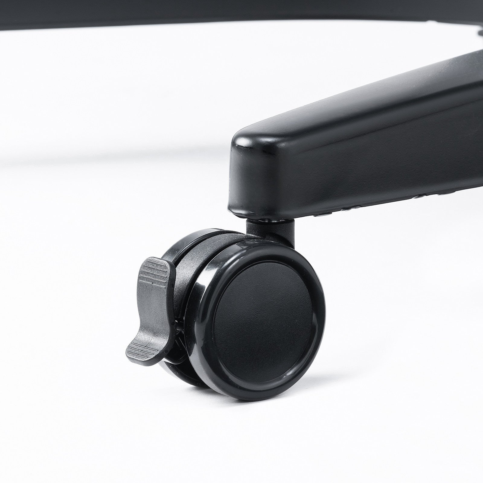 移動に便利な直径75mmの大型キャスター付きです。全てのキャスターにストッパーが付いているため不意に動き出す心配がありません。