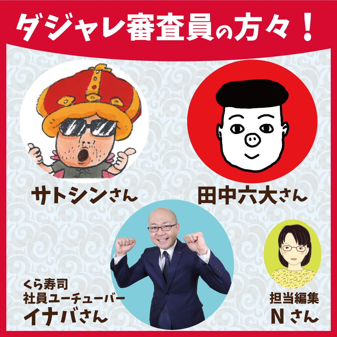 ・ダジャレの優秀賞は、応募条件を満たしている方のコメントから、上記の審査員4名にて選ばせていただきます。