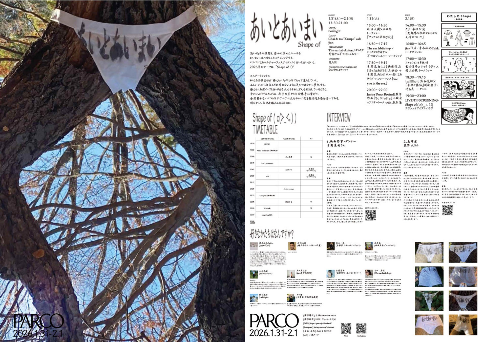 株式会社パルコ(本部:東京都渋谷区、以下パルコ)は、2026年1月31日(土)・2月1日(日)に、思い込みや線引き、誰かの決めたルールをあいまいにしてゆくことにチャレンジする、カルチャーフェスティヴァル「あいとあいまい」を渋谷PARCOで開催いたします。第4回目の開催となる今年はテーマに「 Shape of ( ) 」を掲げ、トークショー・映画上映・パフォーマンス・コント・音楽ライブ・マーケット等、さまざまなイベントを開催します。