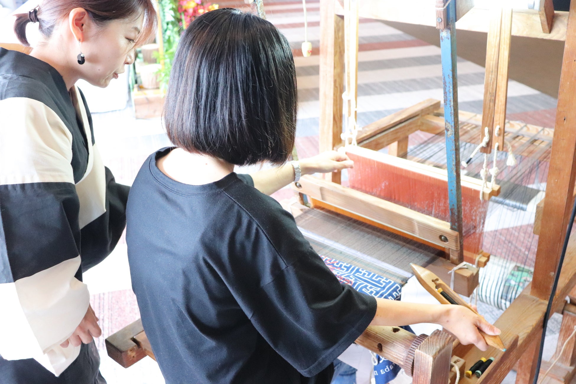 7階の展示会場では、奄美の文化にふれる体験型コンテンツを多数ご用意。伝統工芸「大島紬の機織り」や、南国植物ソテツを使った工作など、島の暮らしに根ざした手仕事を気軽に体験していただけます。