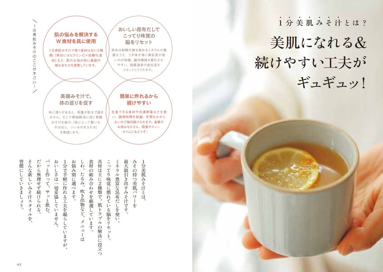 肌に嬉しい栄養がしっかりとれる! まるで美容液のようなみそ汁レシピ集。『美白・潤い・ハリUP! 1分 美肌みそ汁』発売