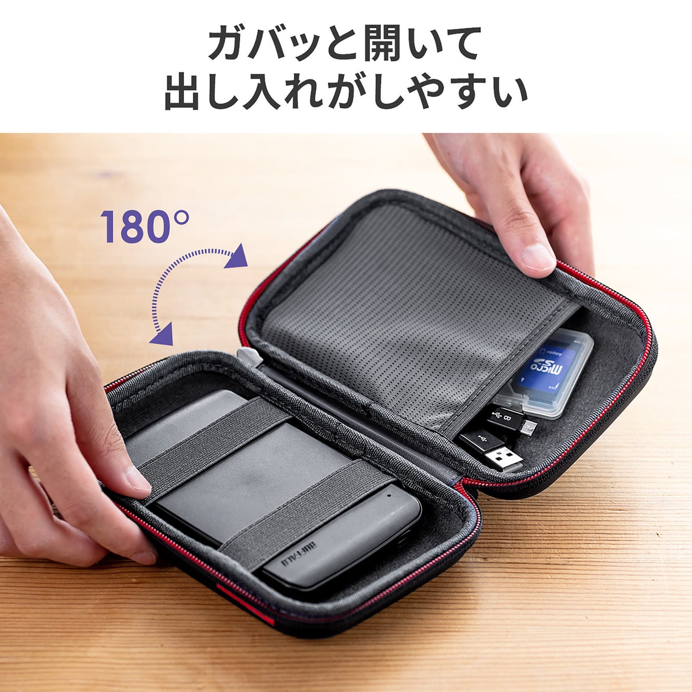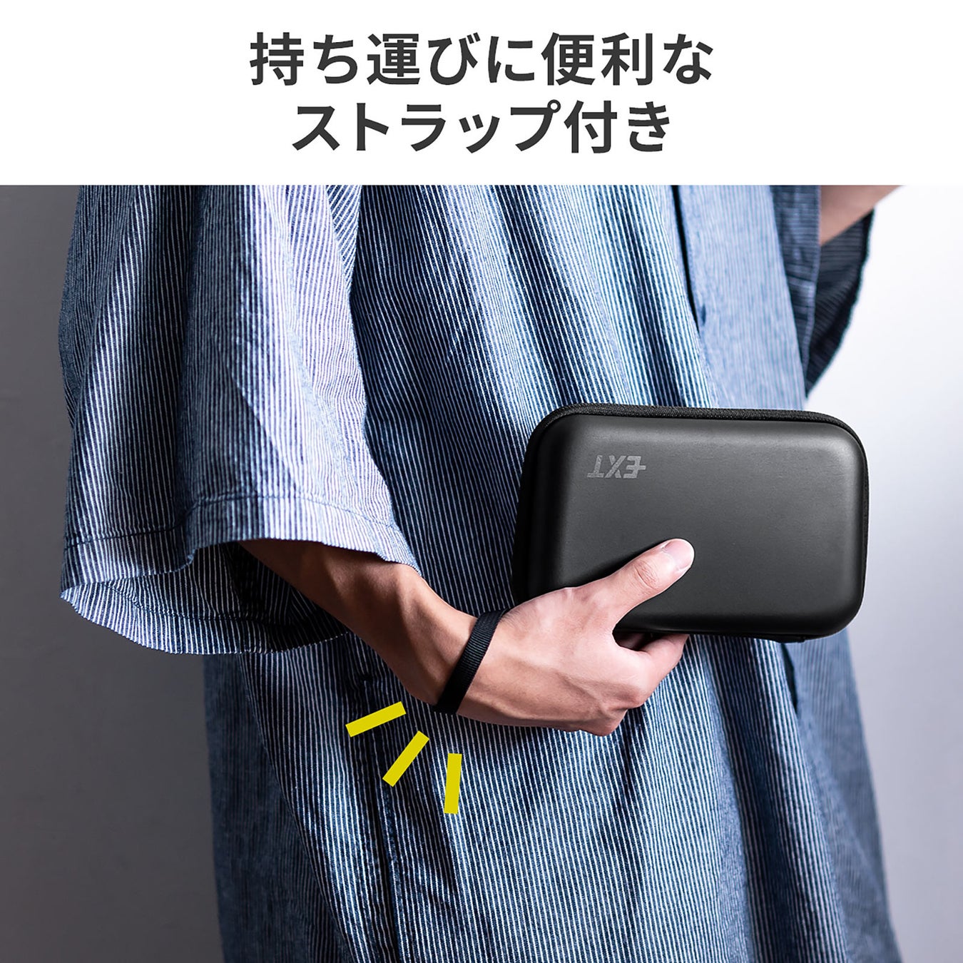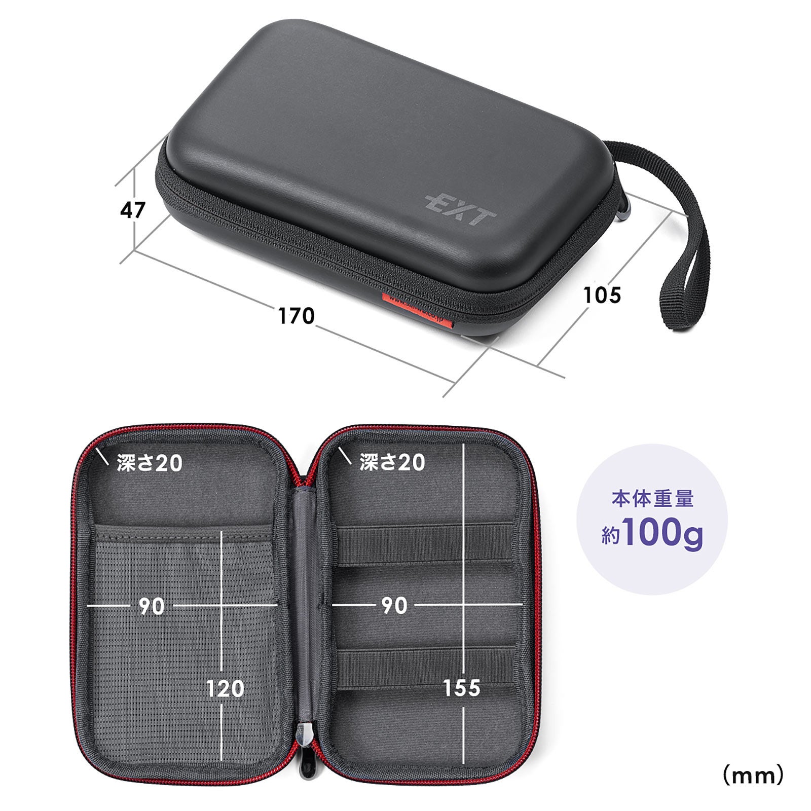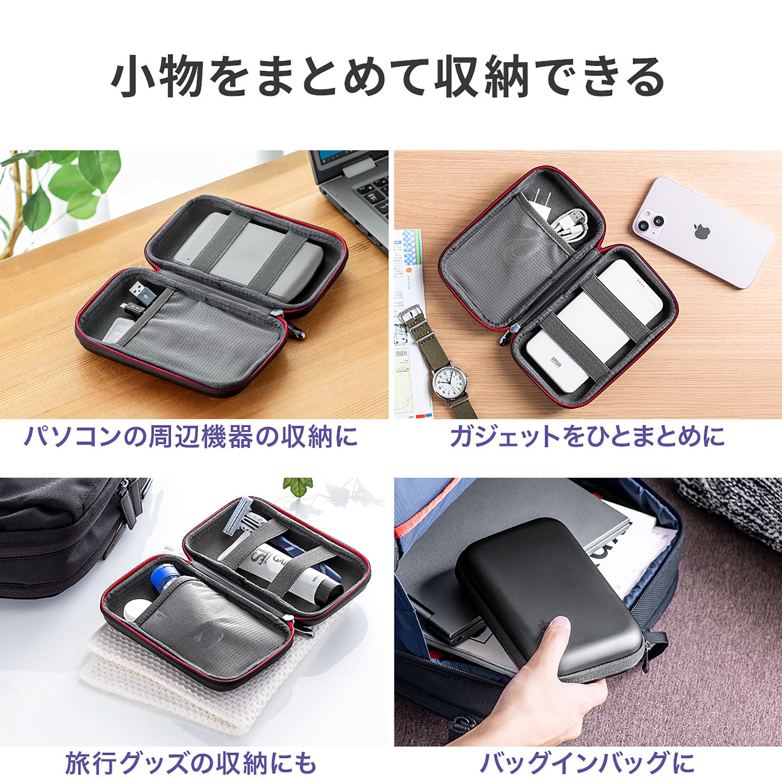 本製品は、ポータブルHDDやモバイルバッテリー、旅行用品などの収納に適したコンパクトなガジェットポーチです。