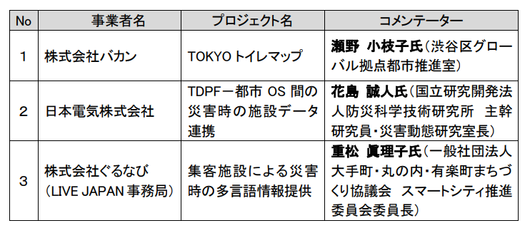 また、本日より採択プロジェクトの一つである、株式会社バカンの「TOKYOトイレマップ」のサービス実証を開始いたしますので、併せてお知らせいたします。