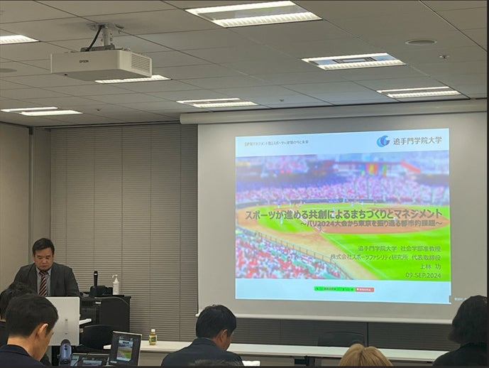 本イベントでは、ゲストスピーカーに追手門学院大学社会学部スポーツ文化学専攻准教授・株式会社スポーツファシリティ研究所代表取締役を務める上林 功氏をお招きし、「スポーツが進める共創によるまちづくりとマネジメント~パリ2024大会から東京を振り返る都市的課題~」と題して、パリ五輪や国内外のスタジアムに触れながらスポーツ×建築の今と未来をご解説いただきました。また、イベント後半では卒業生と講師の川原氏を交え活発なパネルディスカッションを行いました。