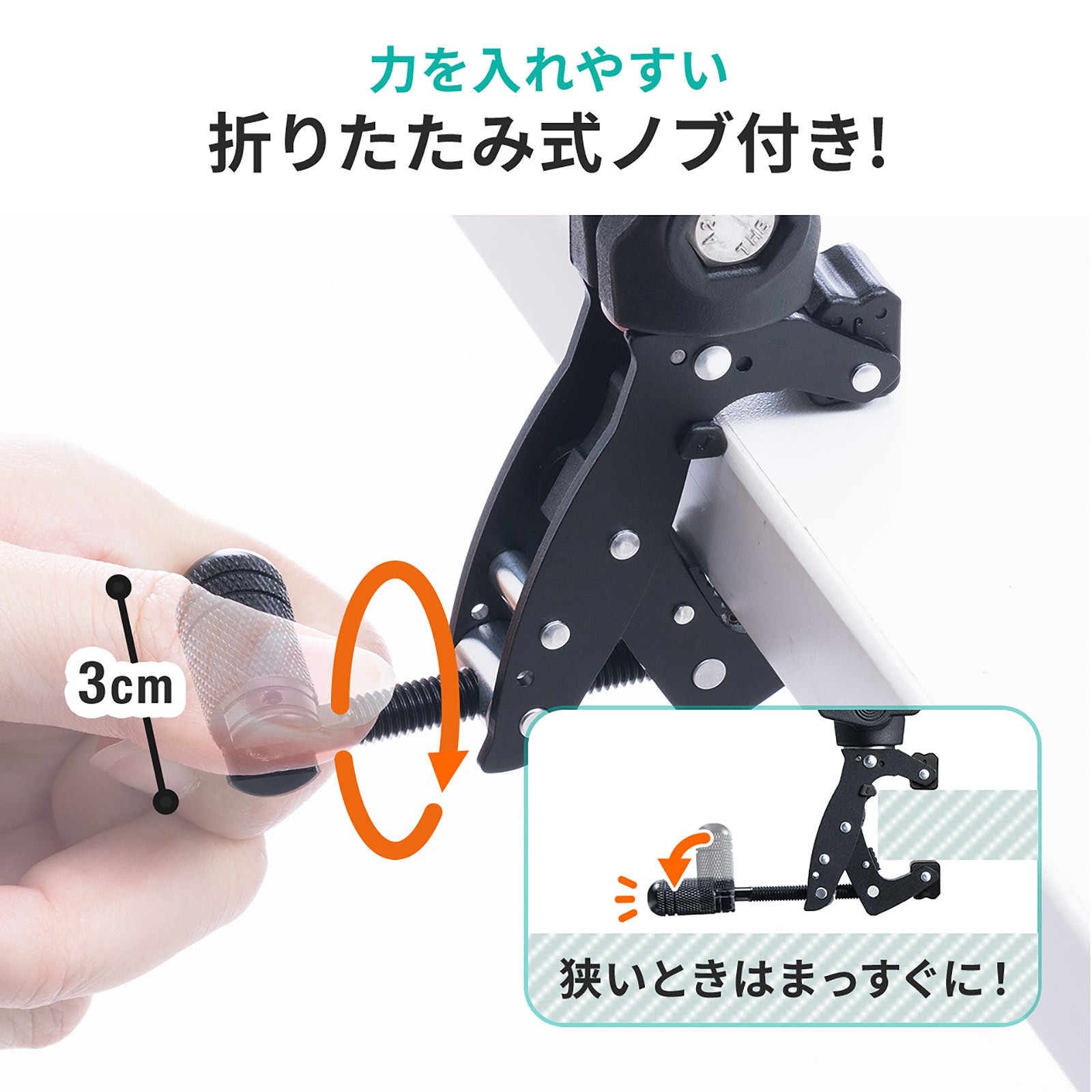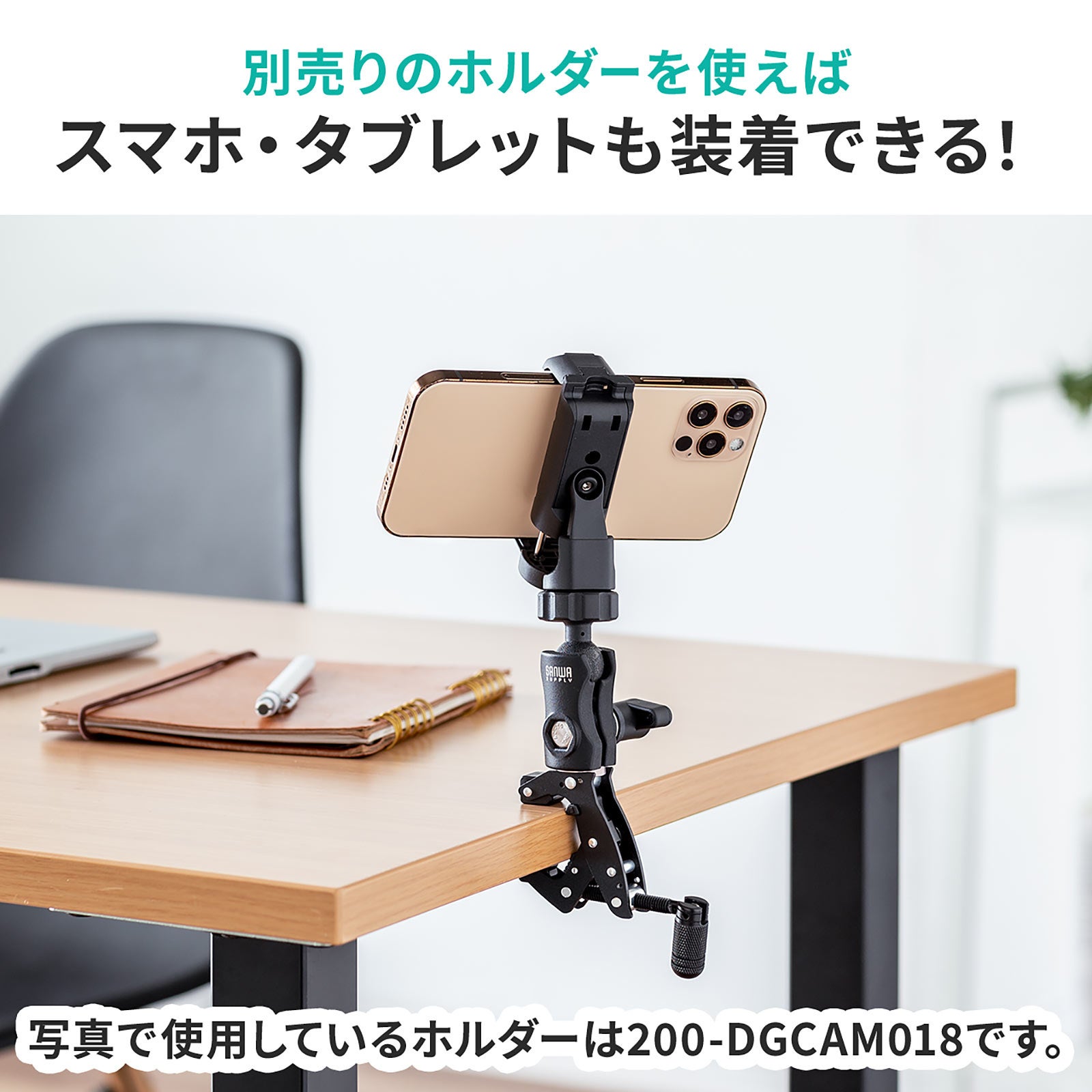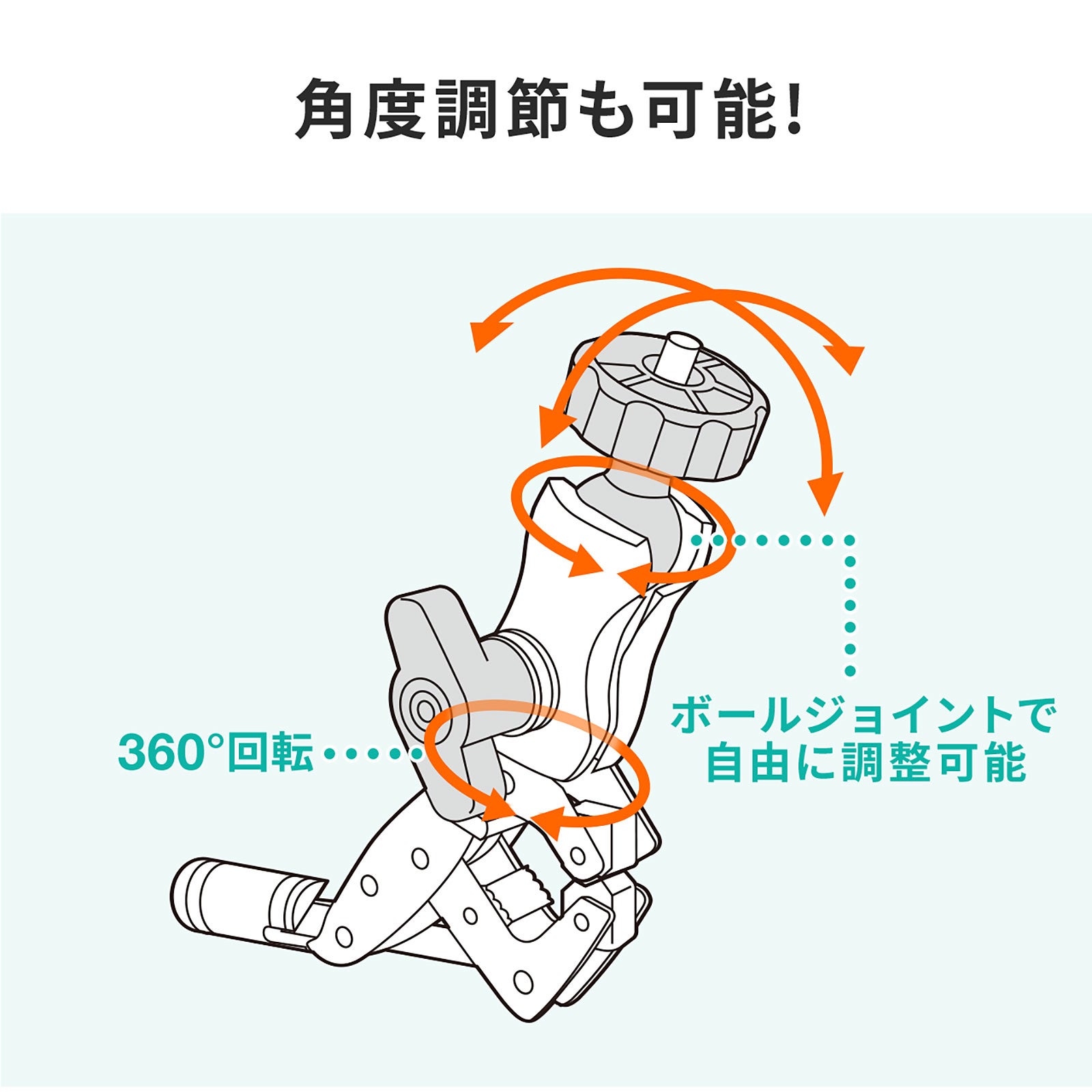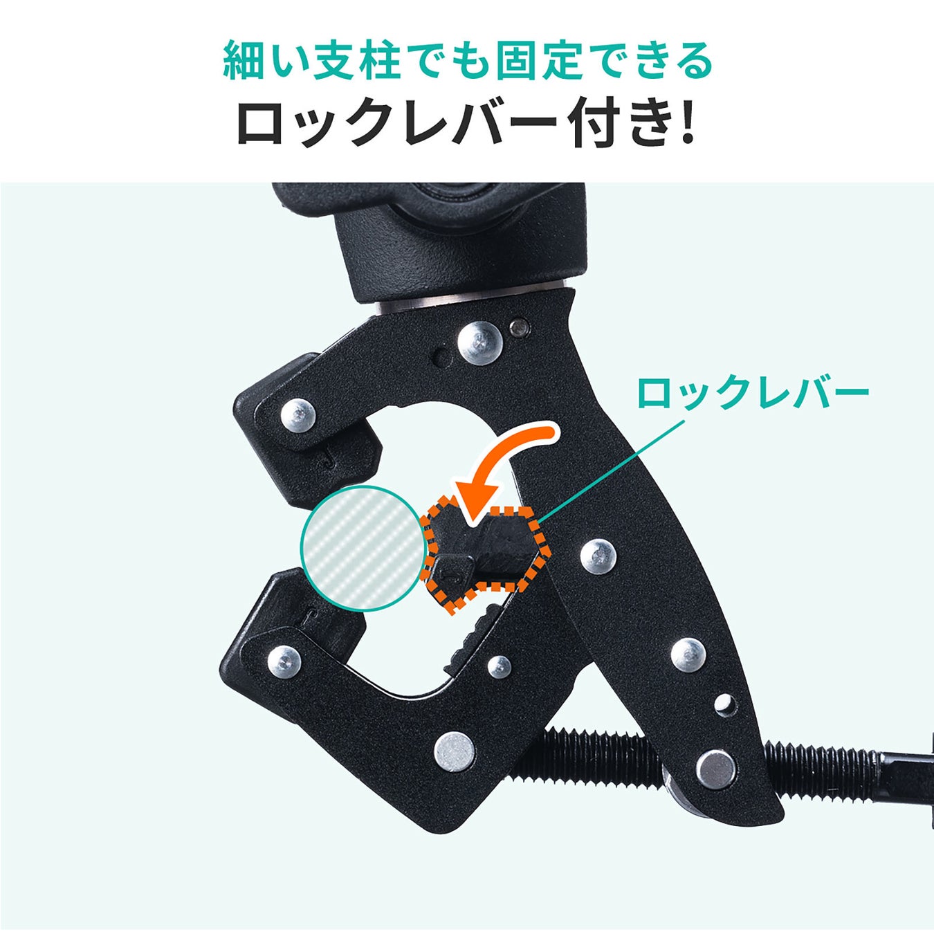 本製品は、カメラや電子機器を天板や支柱などに取り付けできるクランプマウントです。