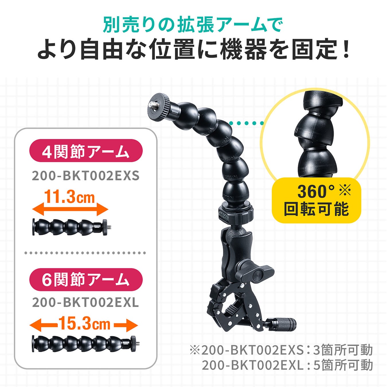 カメラなどの電子機器を天板・支柱などに取り付けできるクランプ式マウントを9月14日発売