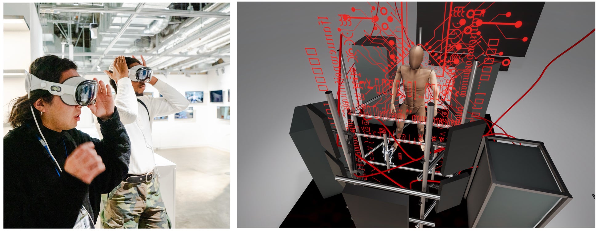 作品は、物理的な展示に加えて、人によるパフォーマンス、VRヘッドマウントディスプレイの映像を組み合わせた、リアルアートとデジタルメディアを複合的に鑑賞するインスタレーションとなっています。