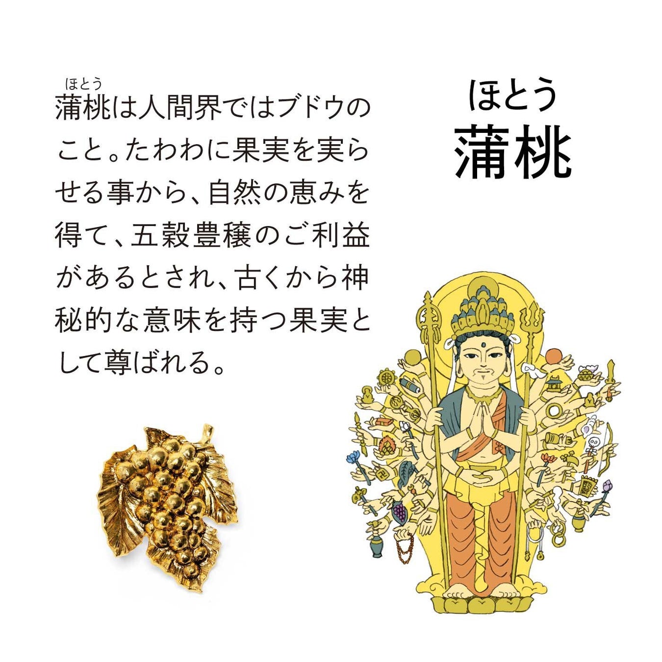 デザインは千手観音が持つ〈蒲桃(ほとう)〉、孔雀明王が持つ〈倶縁果(ぐえんか)〉、鬼子母神が持つ〈吉祥果(きっしょうか)〉の3種類です。
