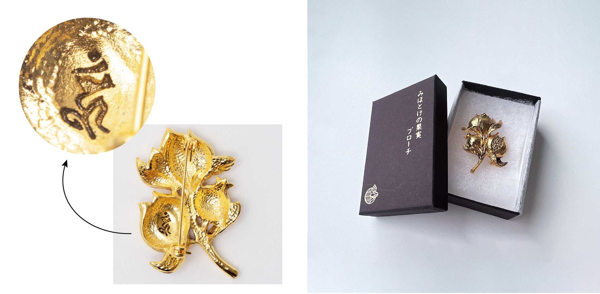 みほとけが手にする果実がモチーフの「縁起もの」ブローチ