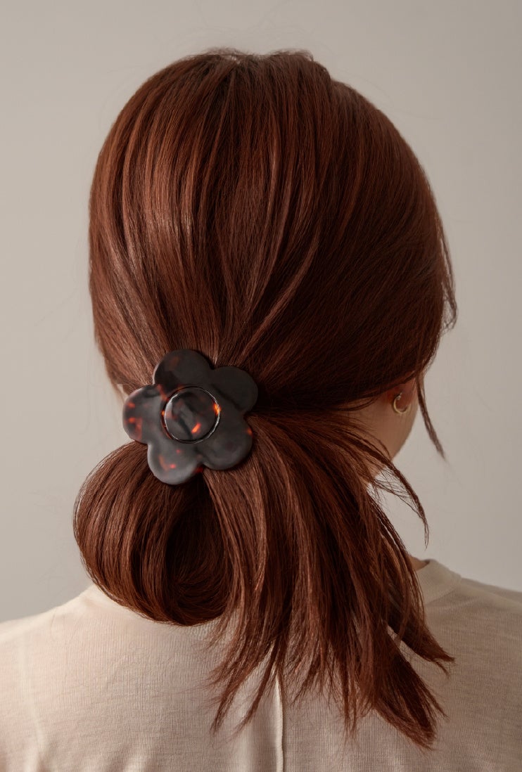 まとめ髪にワンポイント。クラシカルなべっ甲風デイジーバレッタ