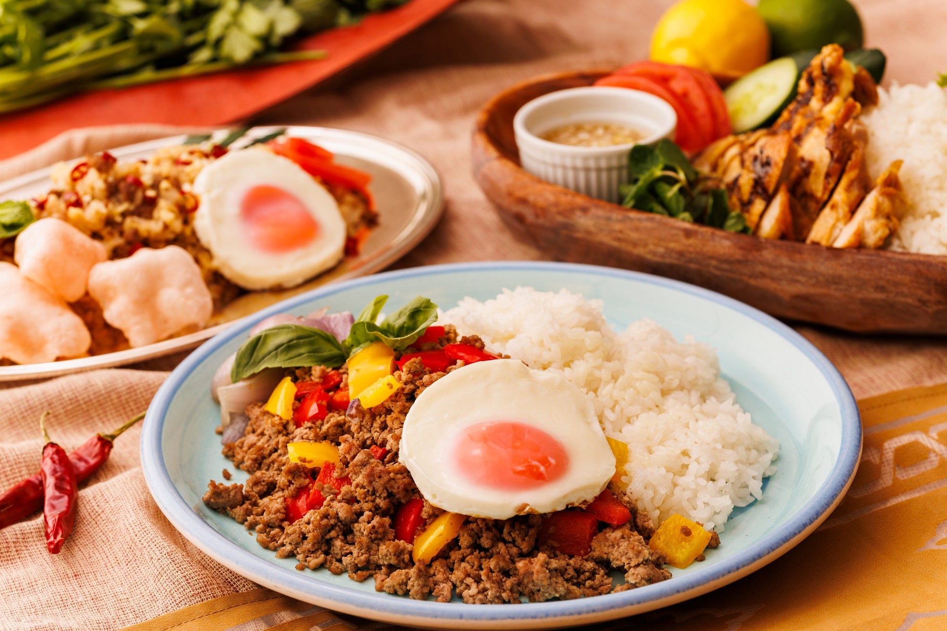 また、タイ、ベトナム、インドネシア、インド、シンガポール、韓国など、アジア各国のバラエティ豊かな料理がブッフェテーブルを彩ります。タイ料理の定番「トムヤムクン」「ガパオライス」、インドネシアのソウルフード「ナシゴレン」、韓国の「キンパ(海苔巻き)」「ヤムニョムチキン」「スンドゥブチゲ」のほか、ベトナム風スペアリブ、タンドリーチキンのサティなど、ハーブやスパイス香るアジアの味覚を存分にご堪能いただけます。