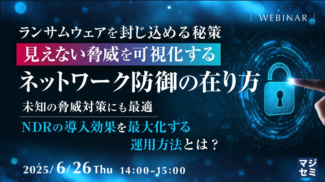 マジセミ株式会社は「ランサムウェアを封じ込める秘策、見えない脅威を可視化するネットワーク防御の在り方」というテーマのウェビナーを開催します。