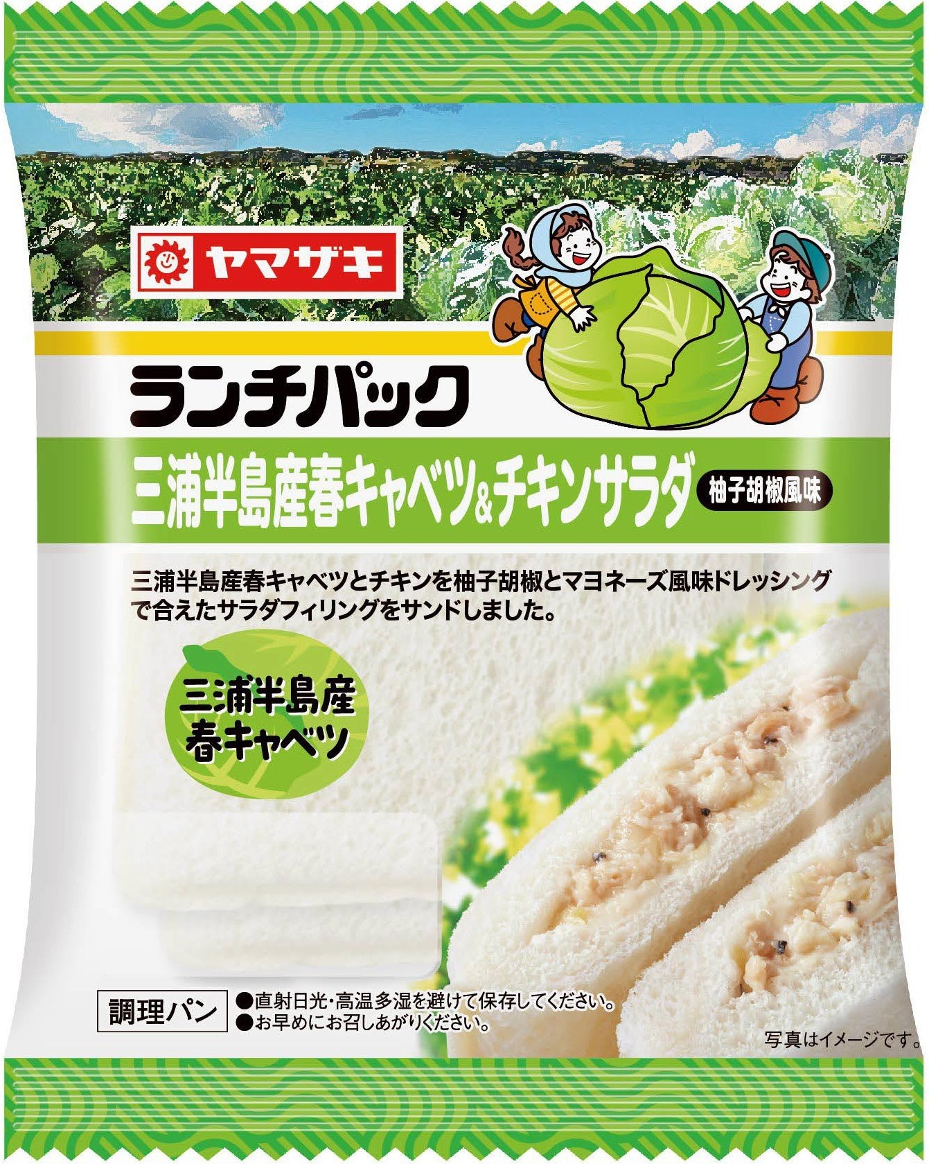 柚子胡椒とマヨネーズ風味ドレッシングで和えた、チキンと三浦半島産春キャベツのフィリングをサンドしました。