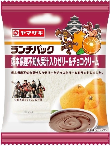 熊本県産不知火果汁入りゼリーとチョコクリームをサンドしました。「熊本城おもてなし武将隊」コラボ商品です。