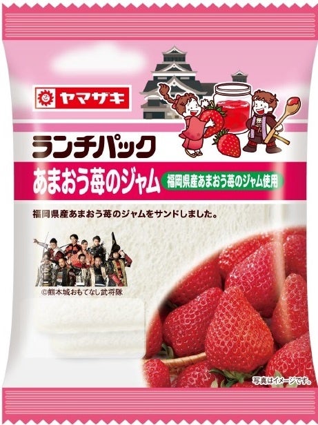 福岡県産あまおう苺のジャムをサンドしました。「熊本城おもてなし武将隊」コラボ商品です。