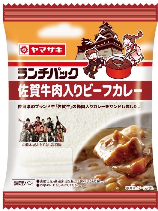 佐賀県のブランド牛「佐賀牛」の挽肉入りカレーをサンドしました。「熊本城おもてなし武将隊」コラボ商品です。