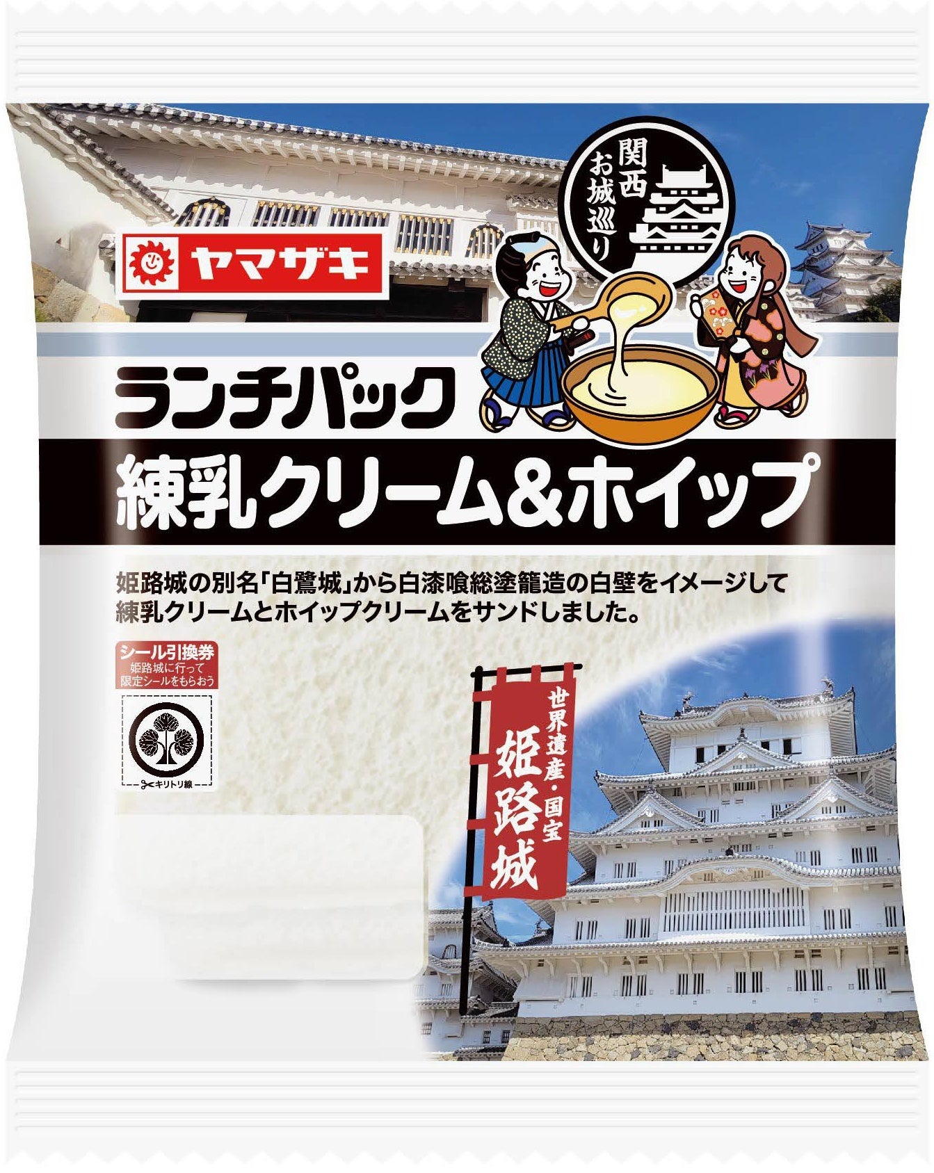 姫路城の別名「白鷺城」から白漆喰総塗籠造(しろしっくいそうぬりごめ)の白壁をイメージして練乳クリームとホイップクリームをサンドしました。