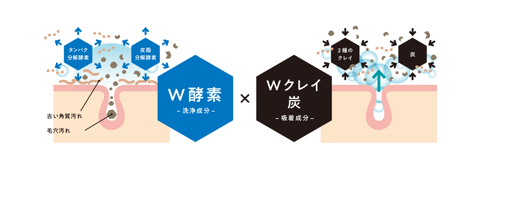 W酵素※4)+Wクレイ※5)と炭で汚れスッキリ