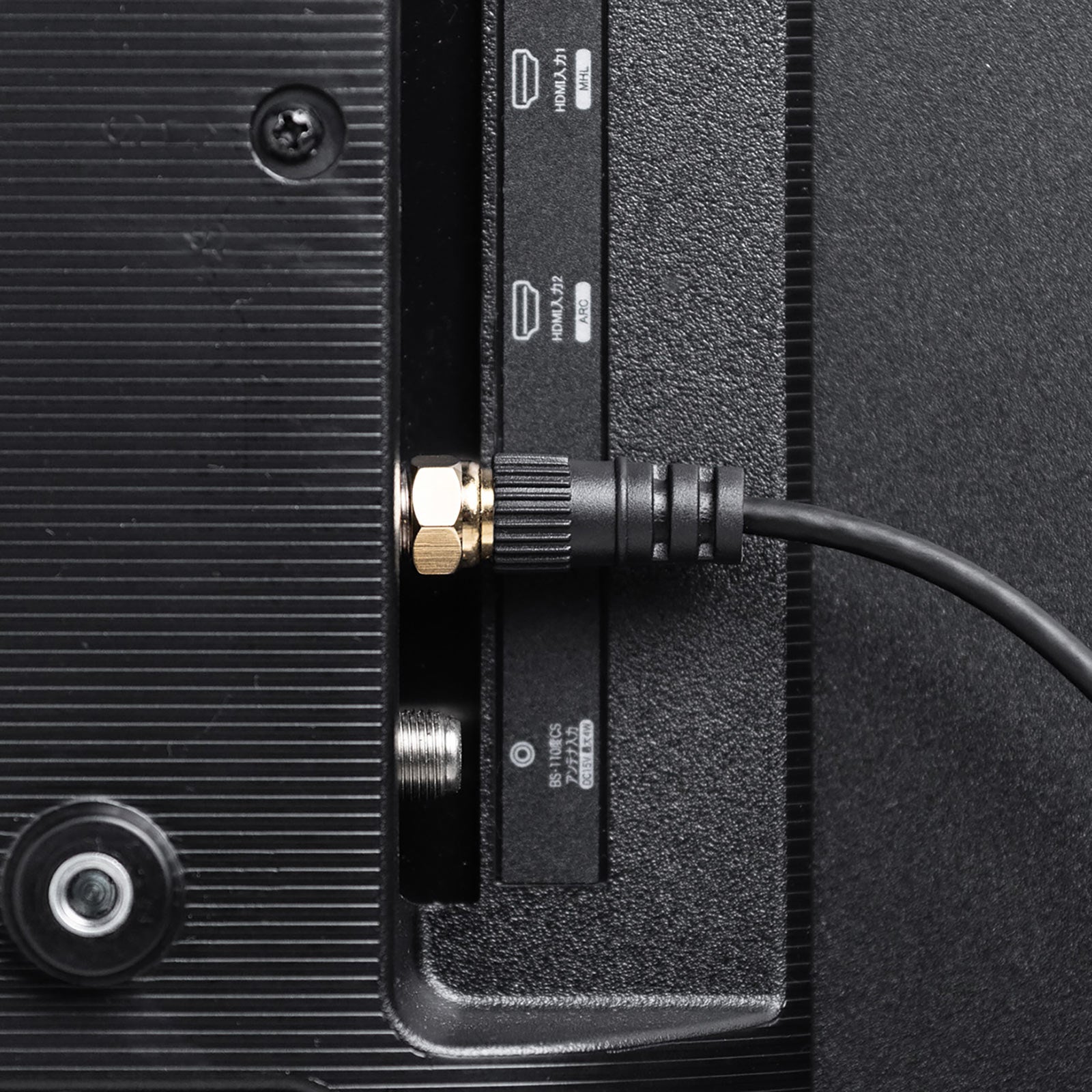本製品は、片側はL字/差込式、もう片側はストレート/ネジ式のテレビアンテナケーブルです。L字型コネクタは壁や家具などの狭い隙間に取り付ける場合に最適でストレートと比べ干渉しにくいです。