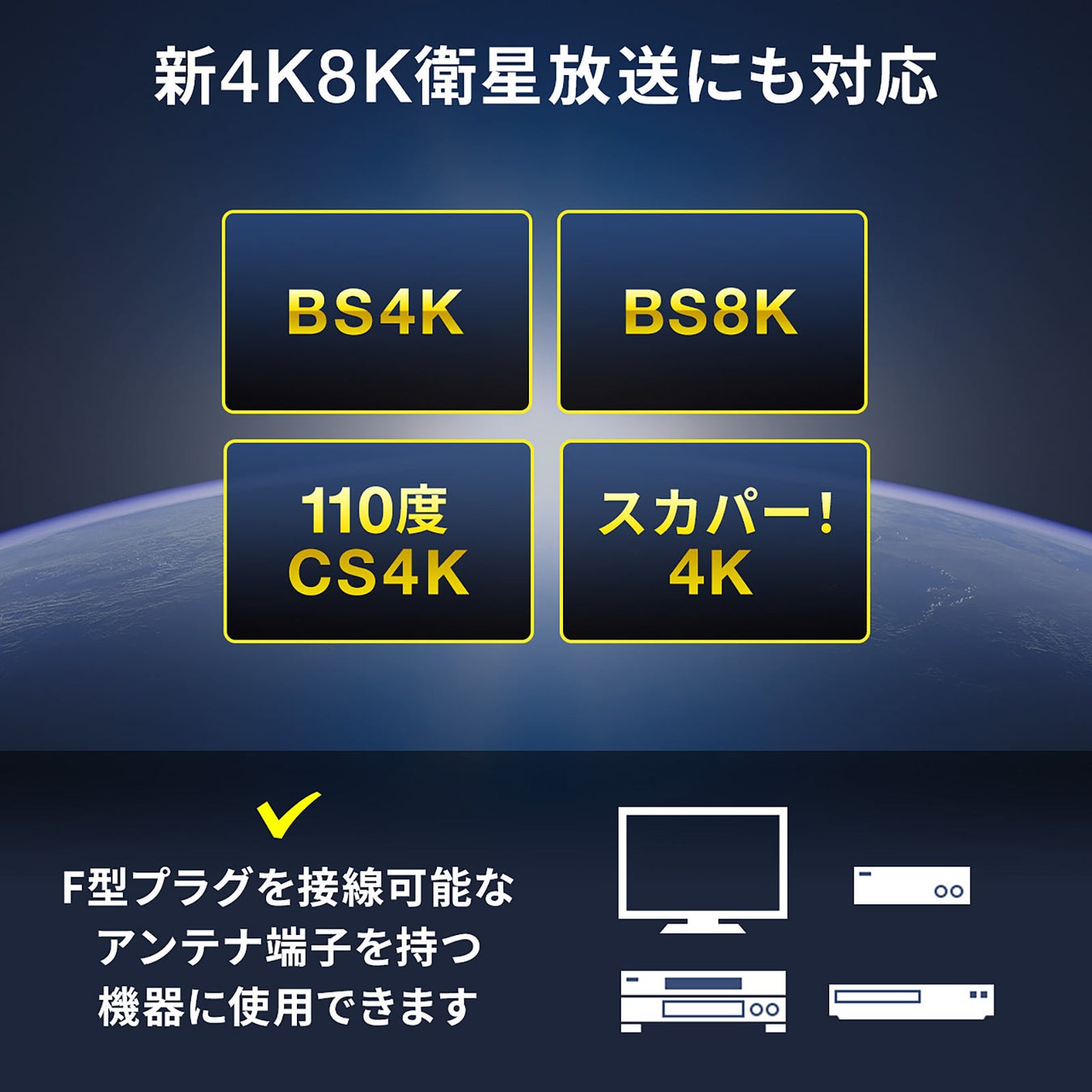 BS新4K/8K・CS・デジタル放送に対応した低損失の線材に映像用高周波75Ω同軸ケーブルを採用しています。