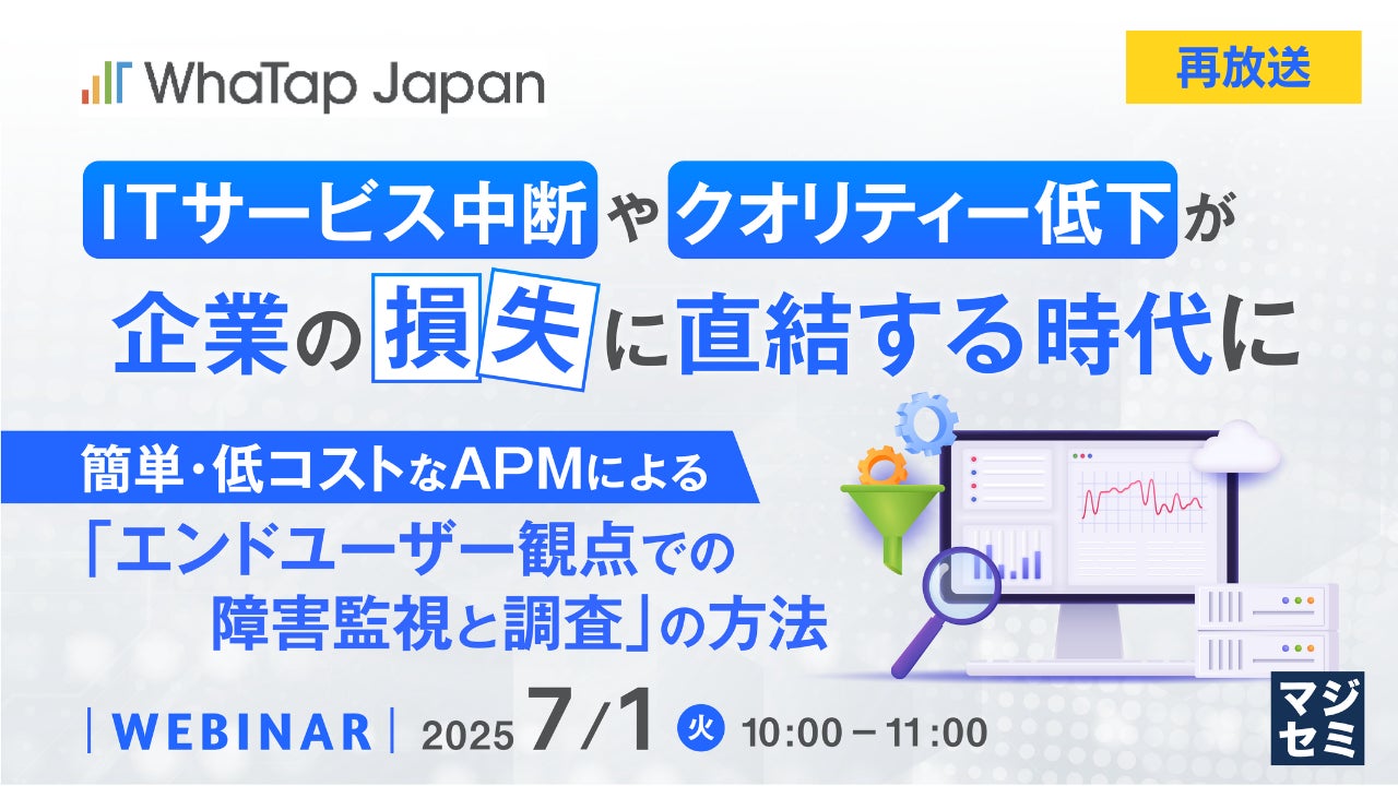 マジセミ株式会社は、大変好評をいただいた「ITサービス中断やクオリティー低下が企業の損失に直結する時代に」というテーマのウェビナーを再放送します。
