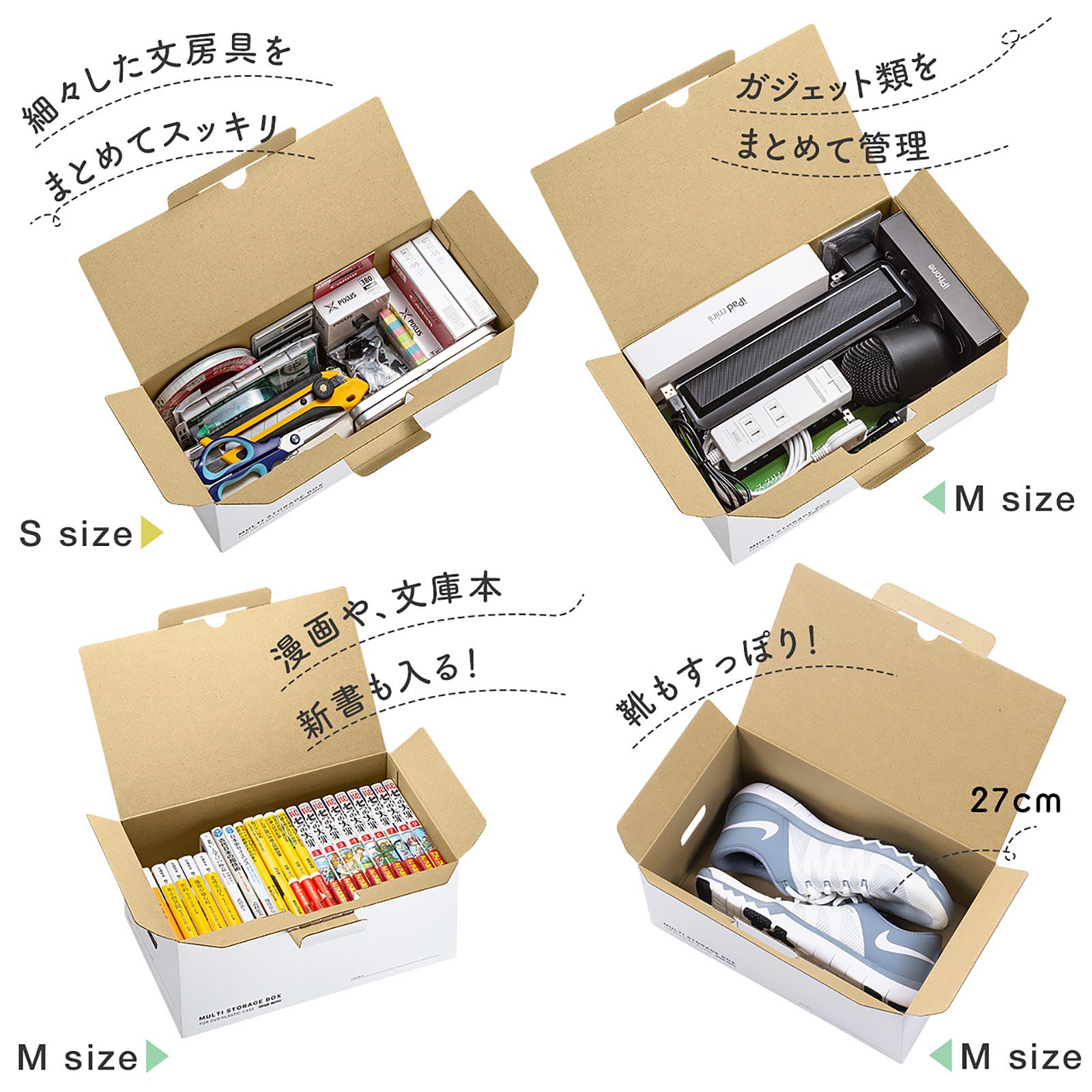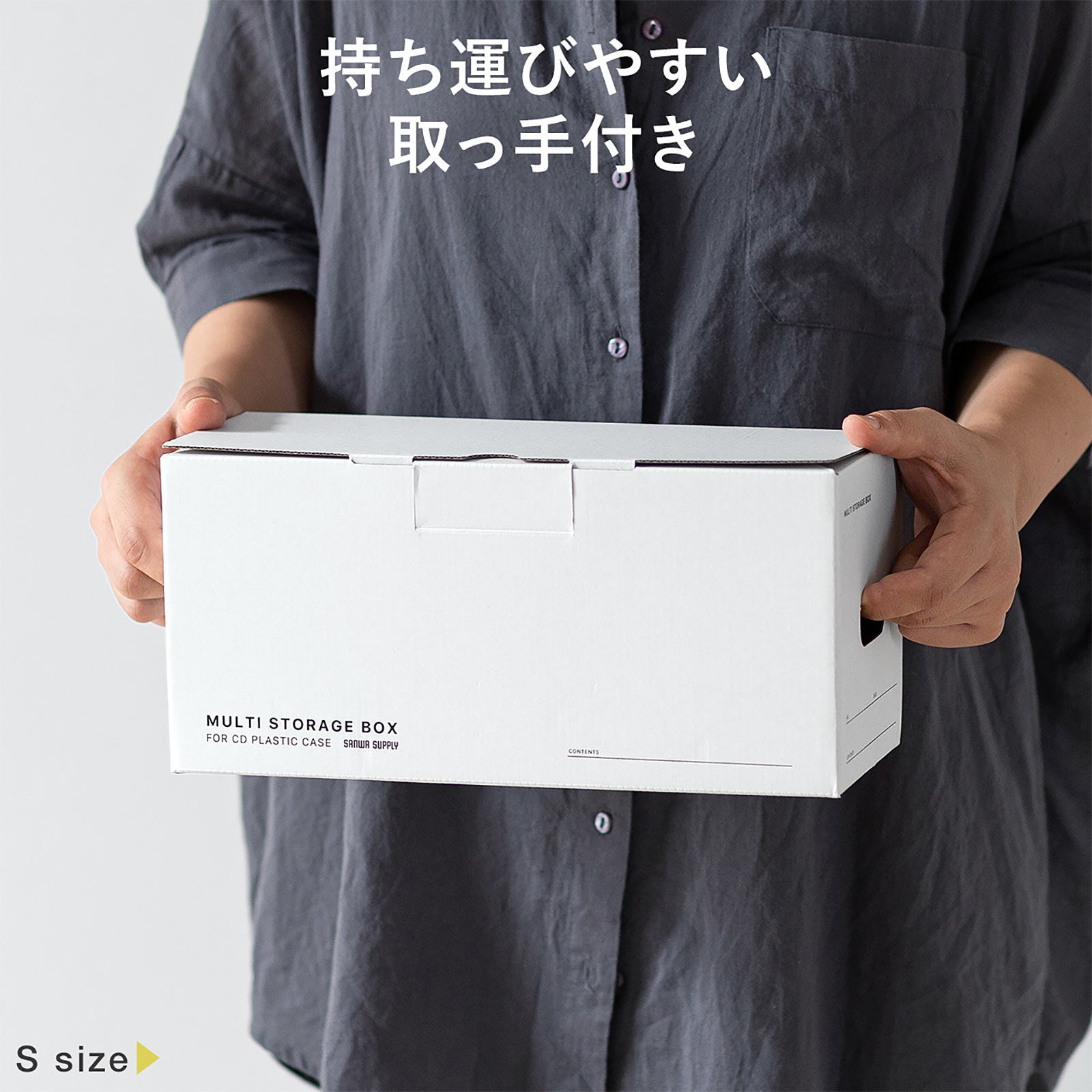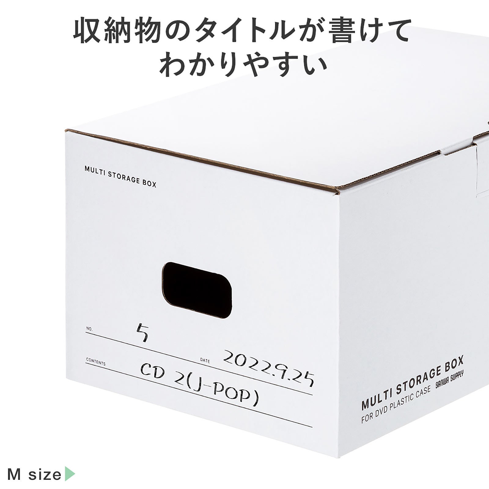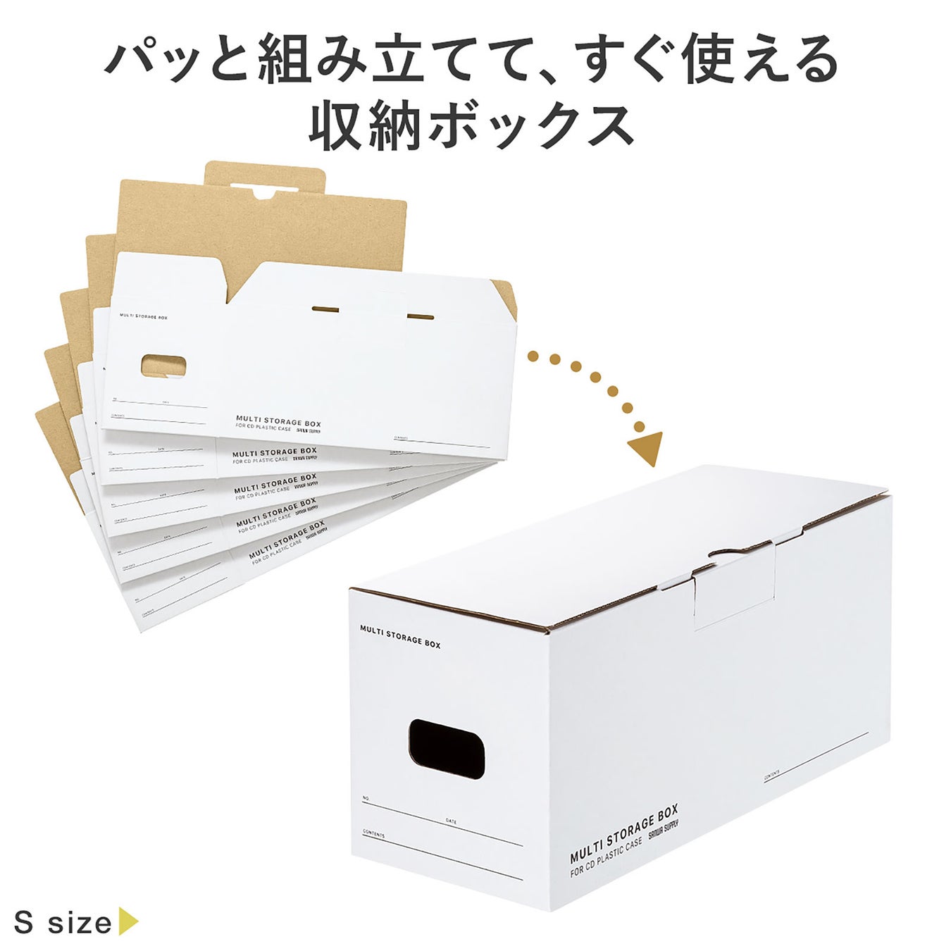 本製品は、CDやDVD、衣服や生活雑貨など用途に合わせて収納できるボックスケースです。段ボール製でワンタッチ組み立てができます。使用しないときは薄く折りたたんで、家具や棚の隙間にストックしておけます。