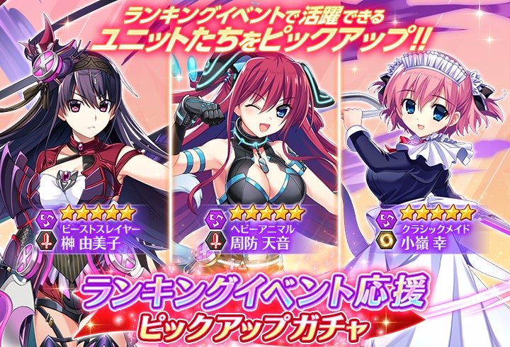 11月10日より、ランキングイベント応援ピックアップガチャが登場!今回は2つに分かれたガチャでそれぞれ3人ずつをピックアップ!ランキングイベントで活躍できるユニットたちを編成してパーティを強化しましょう!