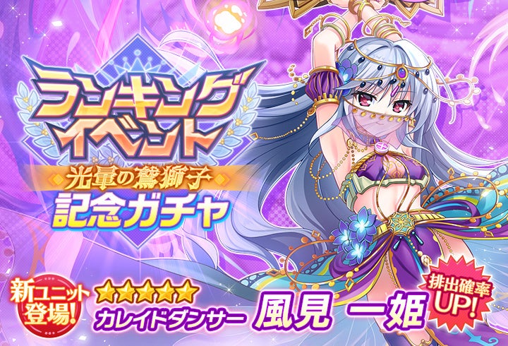 新ユニットとして「カレイドダンサー 風見 一姫」がピックアップガチャに登場!「光暈の鷲獅子」で大活躍間違いなしのアタッカーです!期間限定で排出確率アップ中のこの機会に獲得し、イベントに挑んでみてください。