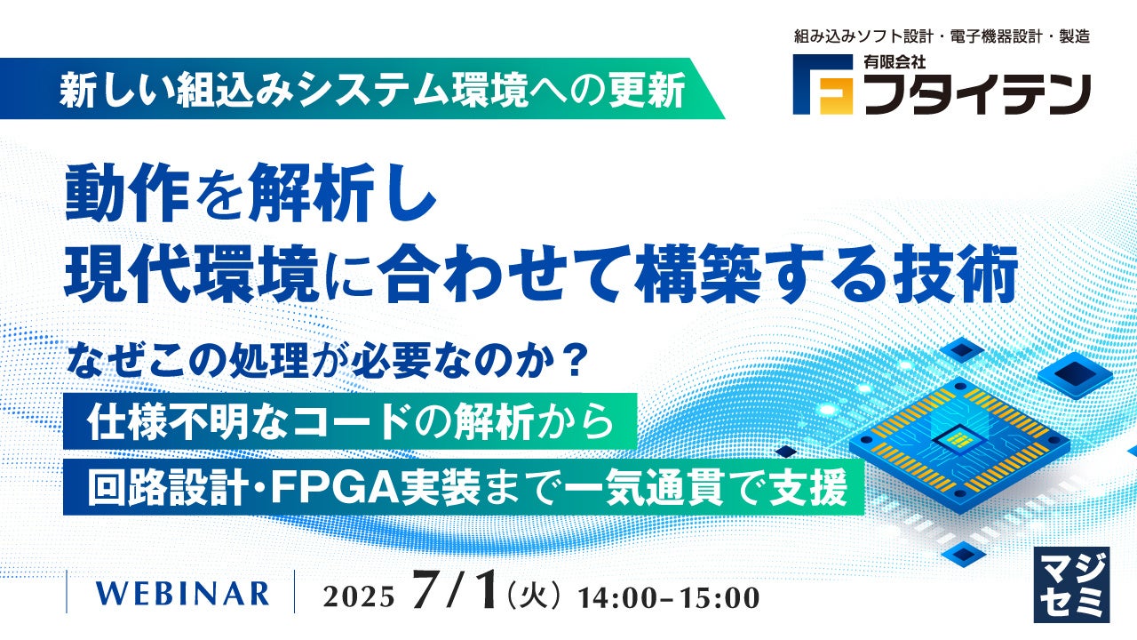 マジセミ株式会社は「【新しい組込みシステム環境への更新】動作を解析し、現代環境に合わせて構築する技術」というテーマのウェビナーを開催します。