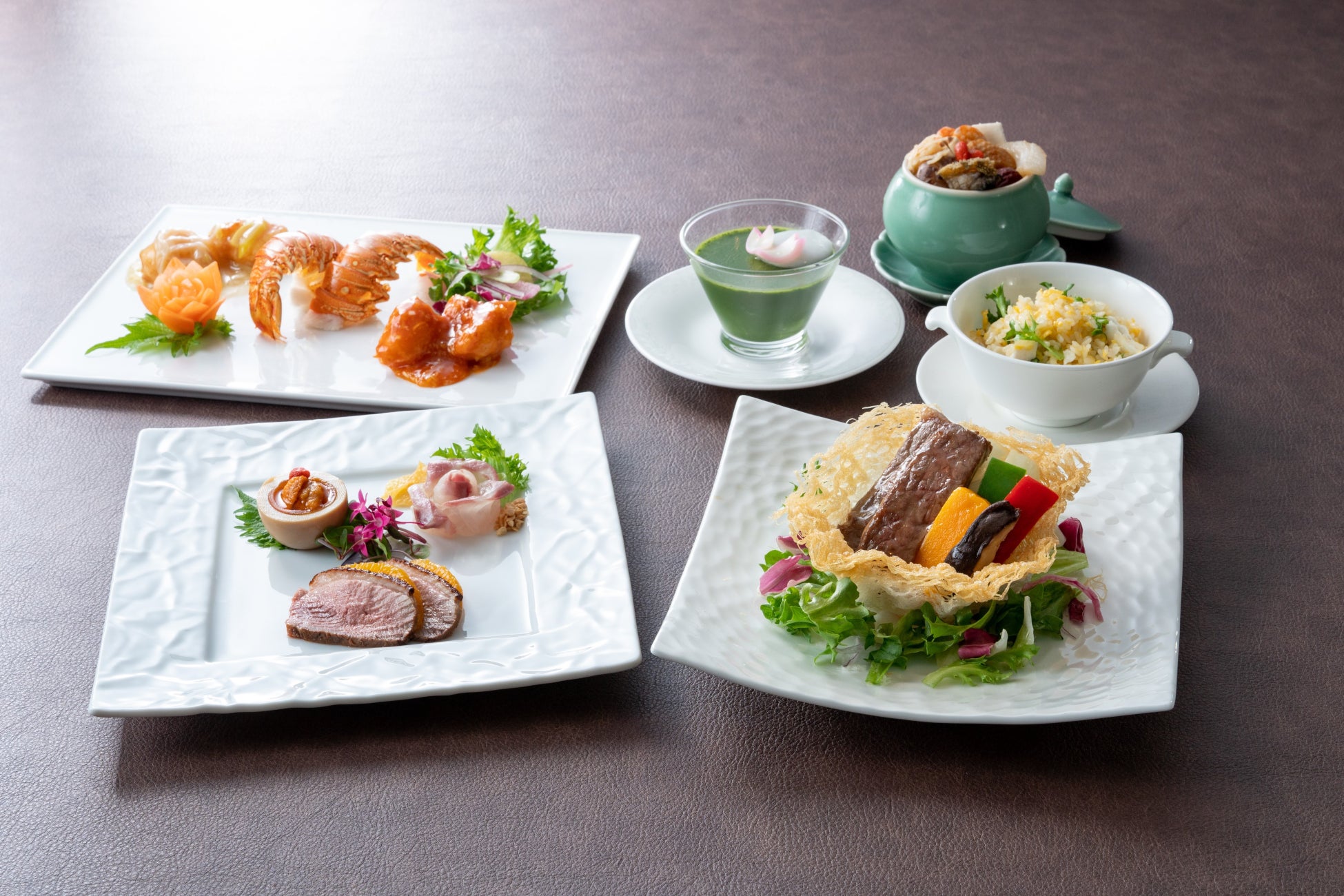 就任記念の特別メニューは、料理コンクールで最優秀賞を受賞した料理をアレンジした前菜をはじめ、2種の味付けをお楽しみいただけるロブスター、福建省で学んだふかひれ、鮑、干貝などを使った壺蒸しスープなど、通常18,000円の贅沢な内容を13,000円にてご用意します。