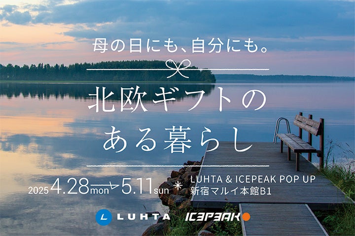 新宿マルイ 本館(株式会社丸井、本社:東京都中野区、取締役社⻑:⻘野 真博)B1Fイベントスペースにて、「母の日にも、自分にも。北欧ギフトのある暮らし LUHTA & ICEPEAK POP UP」を開催いたします。フィンランドの自然や暮らしから生まれたブランド「LUHTA(ルフタ)」と「ICEPEAK(アイスピーク)」が期間限定で登場します。