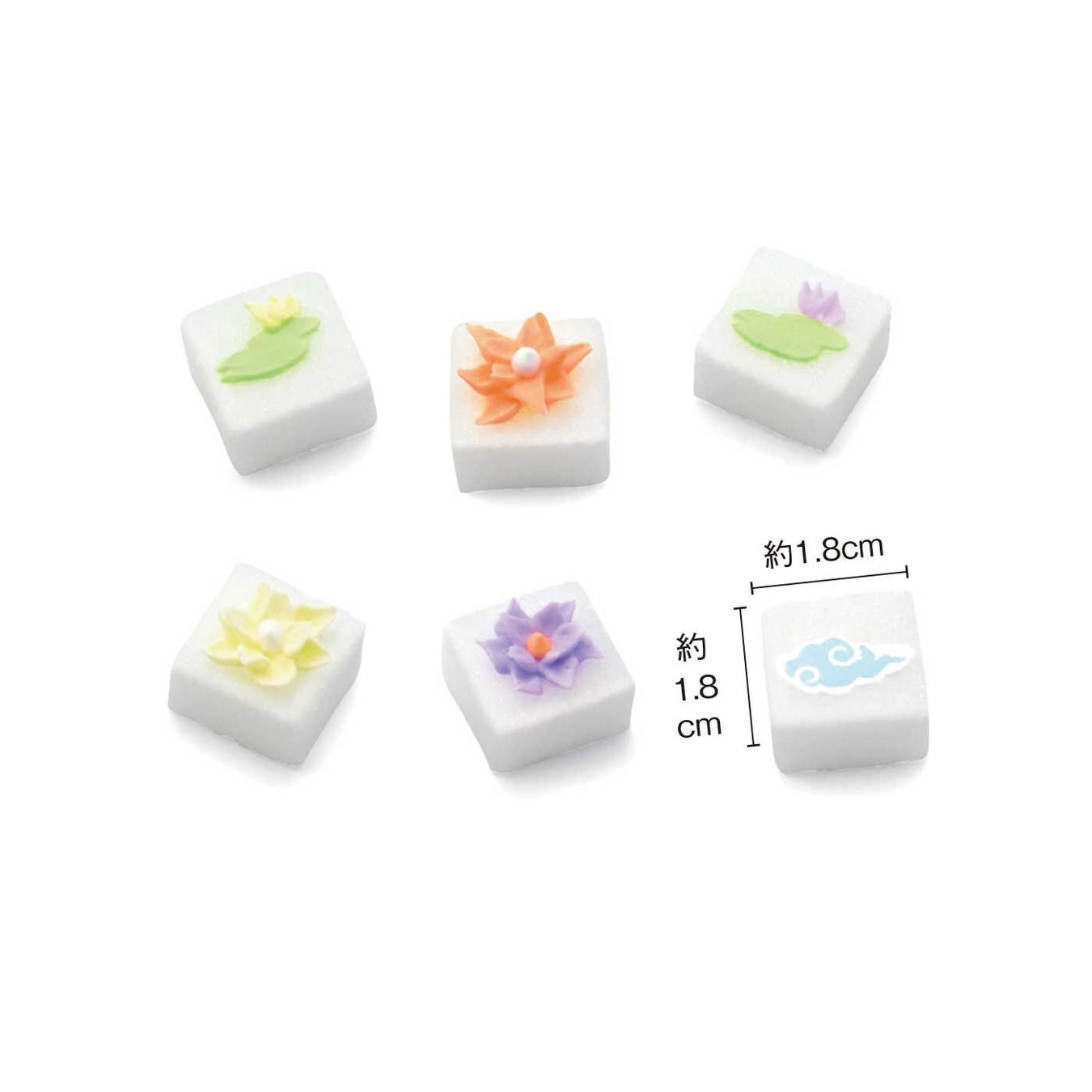 阿弥陀如来さまがいらっしゃるという極楽浄土にあるという宝の池に浮かぶ色とりどりの蓮の花をアイシングで表現した、美しくてかわいい角砂糖です。カップに添えるだけでティータイムが華やかになります。シュガーをカップに落としてひと呼吸。運がよければ、立体の蓮の花が浮かんでくることも……?ティースプーンにちょこんと乗せられるくらいの、かわいいサイズ感です。