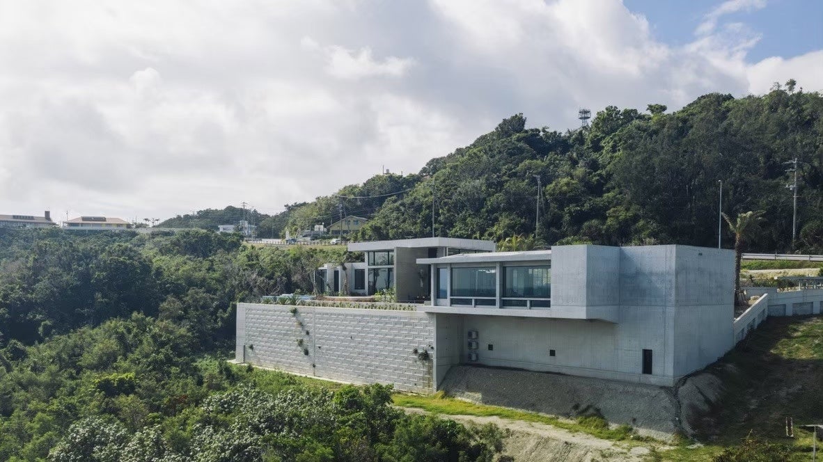 南城市、斎場御嶽と久高島に程近く崖の上に佇む個人邸。光と風を取り込む設計により、自然との繋がりを感じさせる空間が広がる。設計・施工は紀建設 Studio Bespoken(設計士 井出真太郎)。