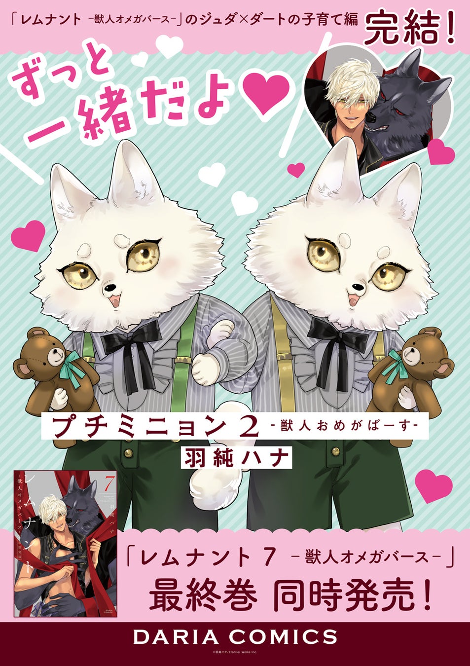 株式会社フロンティアワークス(アニメイトグループ)は、シリーズ累計155万部突破の大人気BL作品「レムナント ‐獣人オメガバース‐」とそのカップルの子供たちの物語を描く「プチミニョン ‐獣人おめがばーす‐」の最終巻を同時発売いたします。