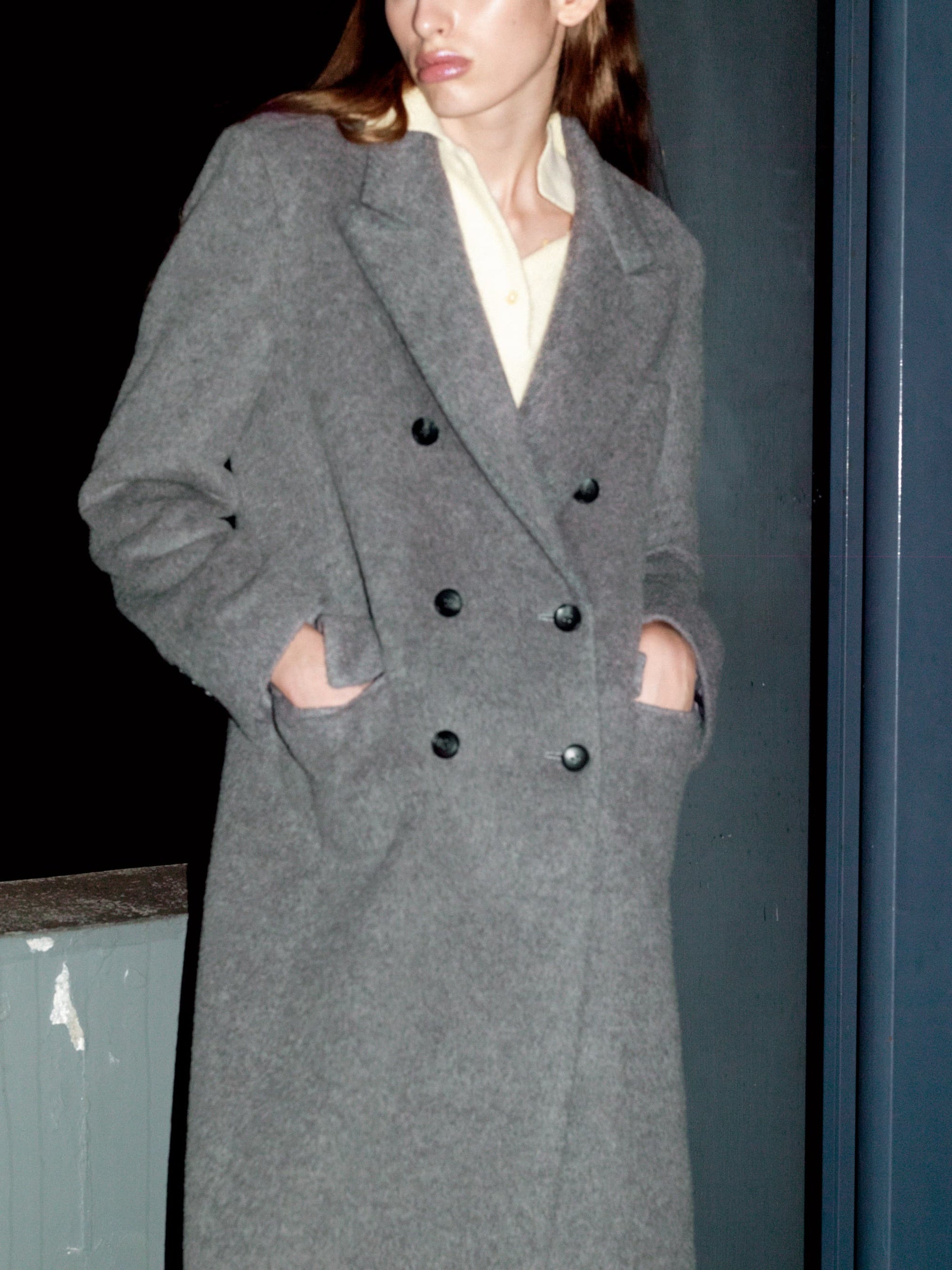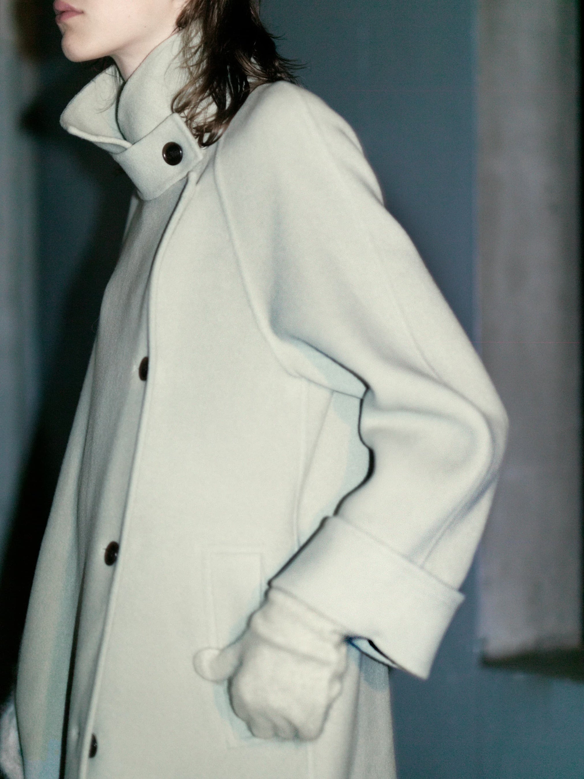 軽やかで暖かく、程よい厚みとハリのある質感でシルエットを美しくキープ。