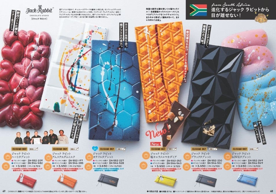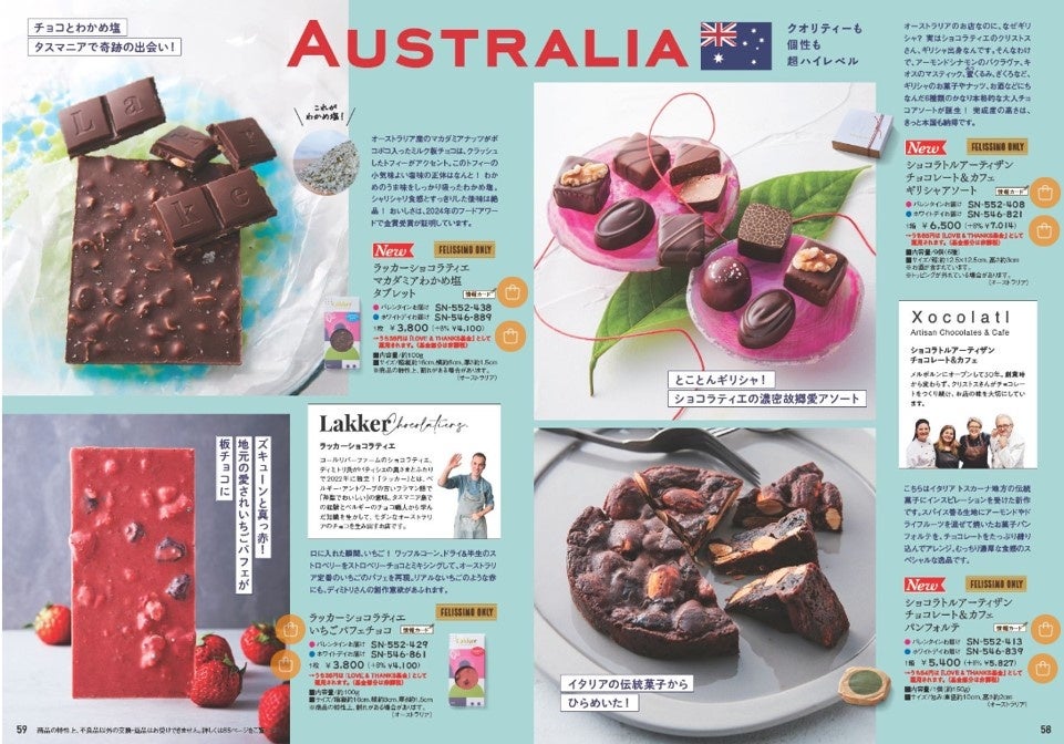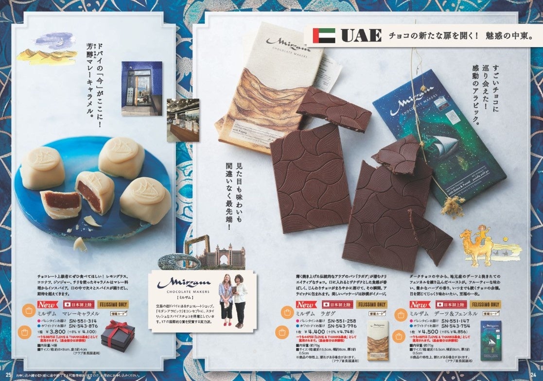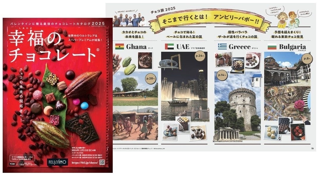 フェリシモが展開する、希少な海外ローカル・プレミアムチョコレートの専門カタログ・ウェブサイト「幸福(しあわせ)のチョコレート(R)」は、【日本初上陸】を含むチョコレートを10月31日に公式サイトを公開し、ウェブ予約販売を開始しています。チョコレートバイヤーみりが、日本でまだ知られていないチョコレートを探す旅をし、世界中のショコラティエに直接会ってセレクトしているのが特徴です。31の国と地域から集結した87ブランド・157点のうち、【日本初上陸】は19ブランド・55点、【フェリシモ限定】は122点。チョコ通・チョコ好きな人のバイブルとも言われる『幸福のチョコレート2025』カタログにはそのうち134点が掲載され、ページを開くとチョコレートで世界を巡っているような気分でチョコ選びが楽しめます。カタログの配布は終了していますが、デジタルカタログで見ることができます。掲載されているすべてのチョコレートの販売価格の約1%(商品によって約2%)は「LOVE & THANKS基金」として、カカオの生産地ガーナの児童労働をなくす活動に拠出されます。詳細はデジタルカタログと特設サイトでチェックできます。