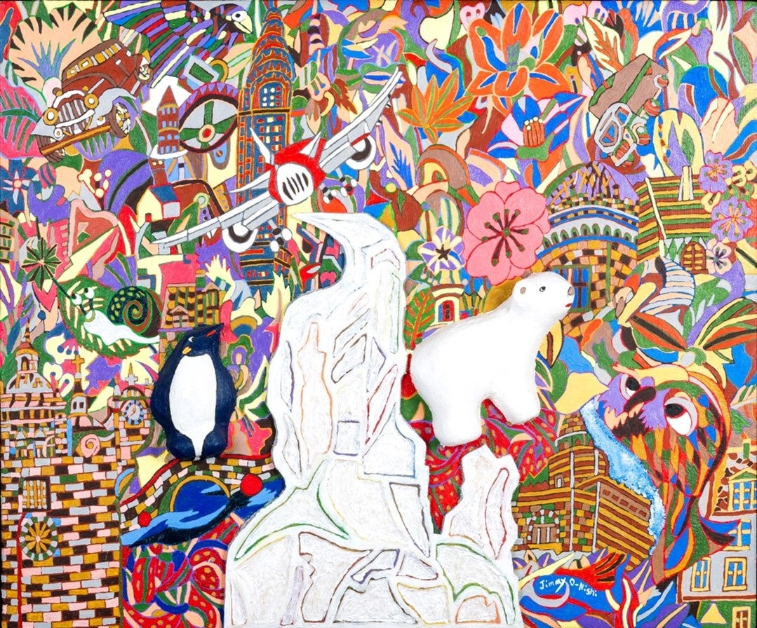1992年にTV番組の企画をきっかけに本格的に絵を描き始めたジミー大西。同時期に、憧れの芸術家・岡本太郎氏から「四角い枠を気にせず、キャンバスからハミ出しちゃえばいいんだ」という言葉をもらい、本気で画家を志します。画家・ジミー大西がはじめにとった行動は、お笑い芸人を辞めてスペインへ移住することでした。スペインに住んでからのジミーの創作スタイルはそれまでと大きく変化し、その変化は実際に描いた作品からも見ることができます。その後も世界各地を放浪し、様々な街やそこで出会った人・物・動物などに影響を受けた多彩な作品を残してきたジミーは、2022年に開催した画業30年記念の個展「POP OUT」でも国内10都市を巡りながら、作品を描きました。