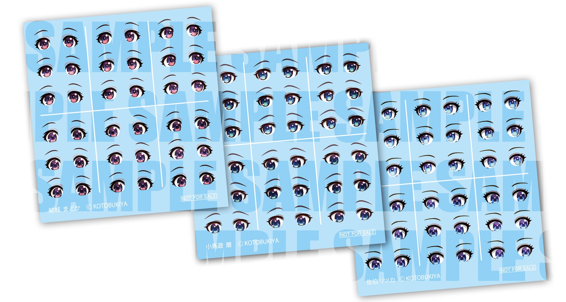 「上下2方向×左右中3方向」の6種の瞳デザイン×3個×3キャラクター分の大ボリューム!