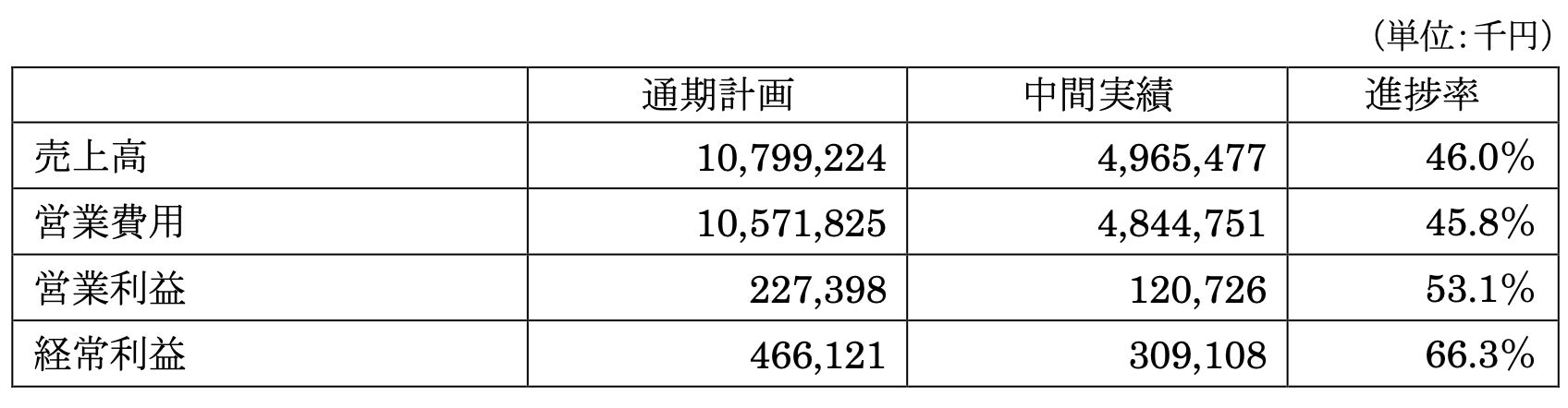 中間純利益は、計画を上回る利益計上で繰延税金資産が増加したことにより法人税等が減少し、3億1百万円(同1.9%増)と増益となりました。