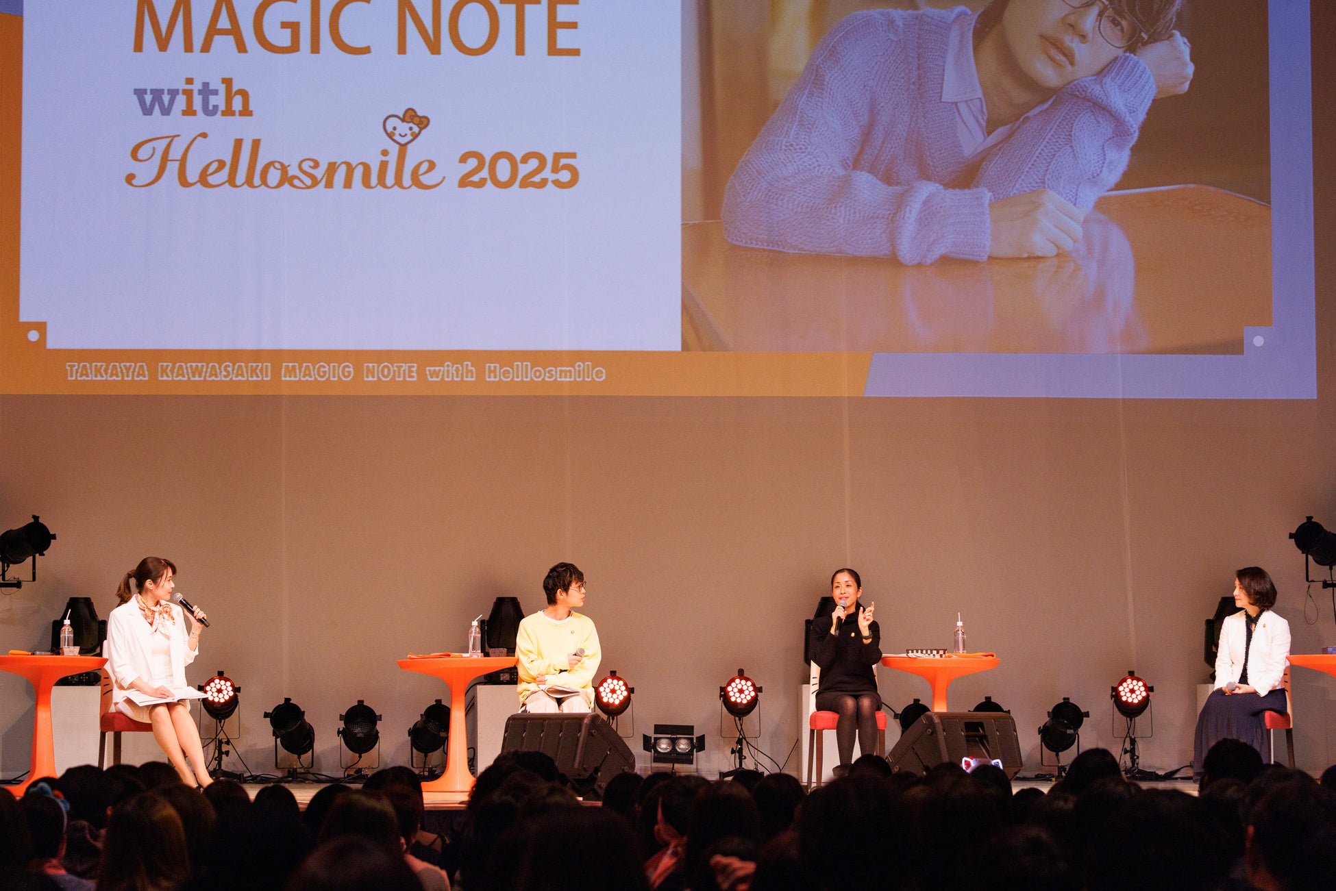 TOKYO FM/ハロースマイル事務局では、子宮頸がん予防啓発プロジェクト『Hellosmile』を展開しているTOKYO FM/ハロースマイル実行委員会とともに、子宮頸がんの正しい情報発信・検診の受診勧奨を目的とし、毎年11月の「子宮頸がん予防啓発強化月間」に合わせて、イベントを通して子宮頸がん検診の重要性を発信しております。今年は、2025年11月24日(月・祝)に、サンリオピューロランド内エンターテイメントホールで、TOKYO FMにて放送中の番組『川崎鷹也 MAGIC NOTE』(日 24:30~放送)と連動し、「川崎鷹也 MAGIC NOTE with Hellosmile 2025」を開催いたしました。当日の様子をレポートでお届けいたします。