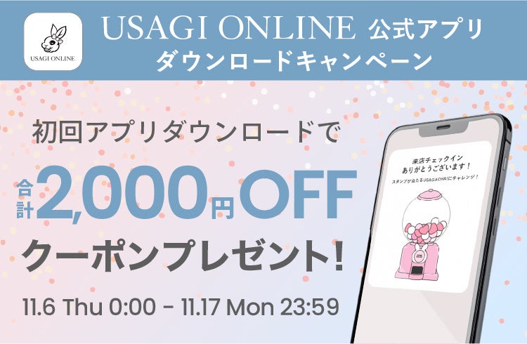 期間中、USAGI ONLINE公式アプリをダウンロードいただくと、合計2,000円OFFクーポンをプレゼント!