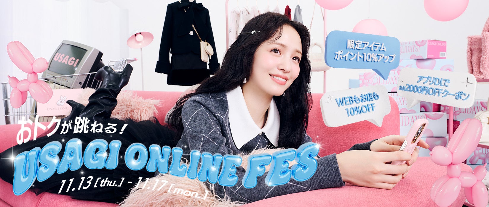 株式会社ウサギオンライン(本社:東京都千代⽥区/代表取締役社⻑:須藤 誠)が運営するオンラインデパートメントストア「USAGI ONLINE(ウサギオンライン)」は、11⽉13⽇(⽊)から11⽉17⽇(⽉)の期間、 10%OFFキャンペーンや限定アイテムの発売、豪華プレゼントキャンペーンを盛り込んだスペシャルフェス「USAGI ONLINE FES 2025」を開催いたします。