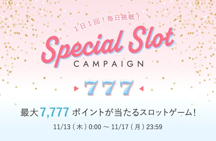 最大7,777ポイントプレゼント!はずれ無しのスロットチャンス。