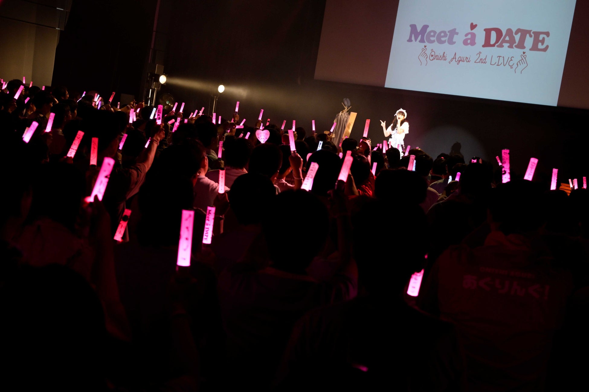 『大西亜玖璃 2nd LIVE ~Meet a DATE~』のコンセプトは、ライブのタイトル通り、あぐぽん(=大西亜玖璃)とのデートを楽しむ、というもの。ライブのセットリストだけでなく、オリジナルのナレーション、さらには衣装もデートをベースに考えられていて、かなりコンセプチュアルなライブとなった。