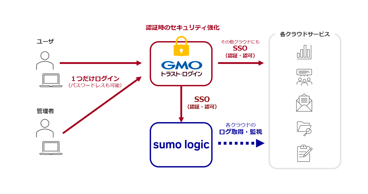 企業向けシングルサインオンサービス「GMOトラスト・ログイン」、SaaS型マシンデータ分析プラットフォームの「Sumo Logic」と連携開始