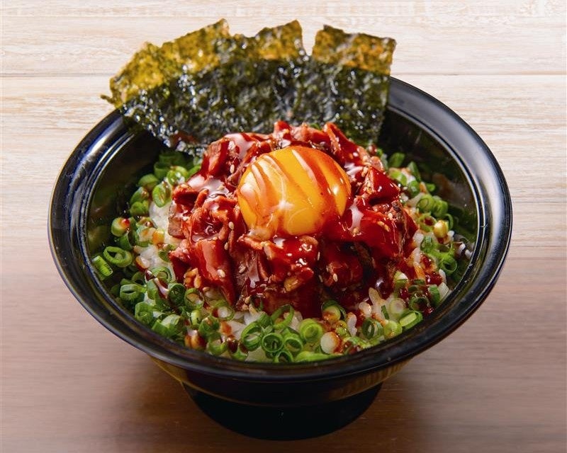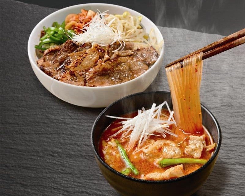 たっぷりの特製コチュジャンソースとアクセントに韓国のり! たっぷりなチゲスープがカルビ丼と相性抜群!