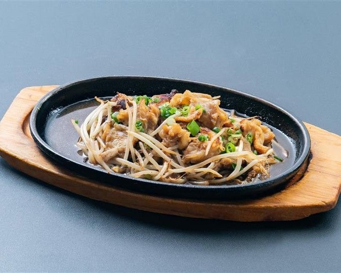 鶏のハラミと野菜をタレと絡めて香ばしく炒め、熱々の鉄板 醤油ベースのスープにコチュジャンのピリ辛、野菜の旨みを
