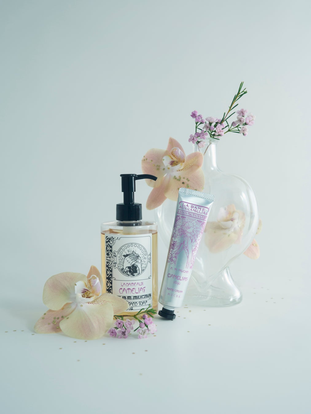 手肌をアートとリンクした香りで彩る、絵の具のチューブのような美しいハンドクリーム。3種類のセラミド、ヒアルロン酸、ビタミンC誘導体(3-O-エチルアスコルビン酸)に加え、『カメリア』のアートからインスパイアされた、ツバキ花エキス、ラベンダー花エキスなどの美容成分*を贅沢に配合し、健やかで艶めく手肌へ導きます。